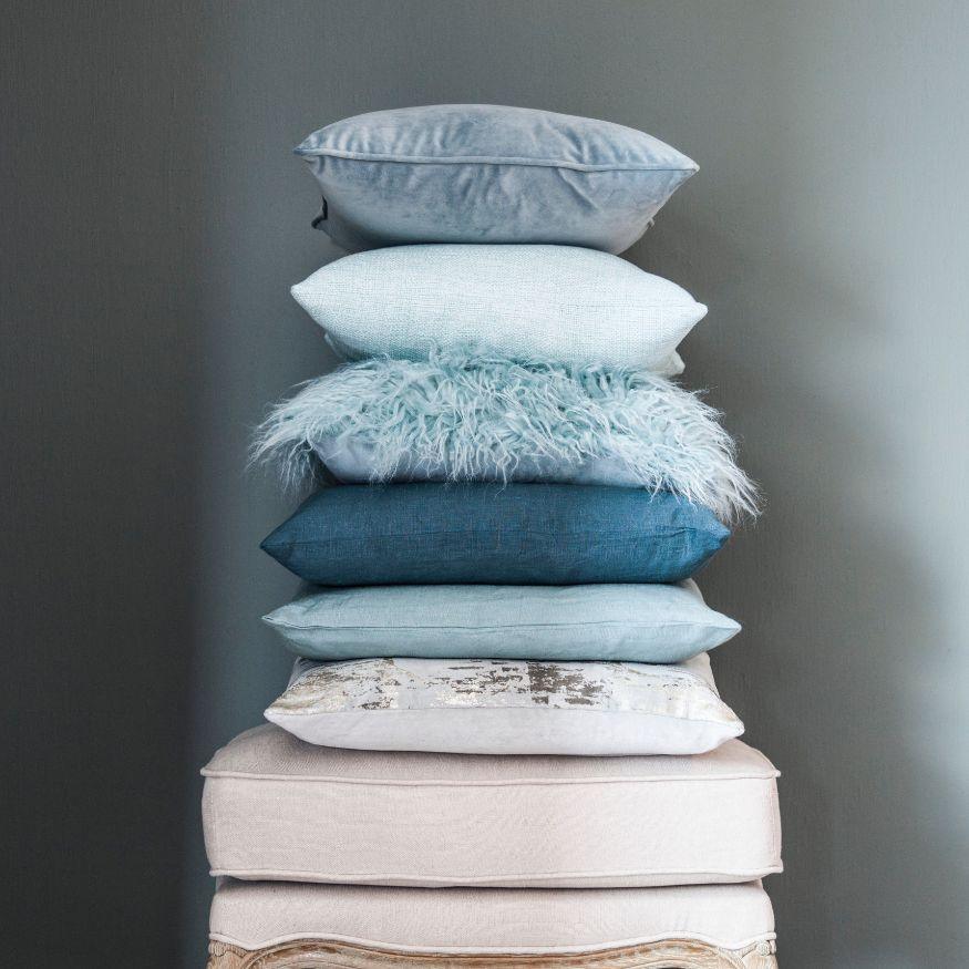 - Choose cushions in a similar colour palette but with different patterns or textures.