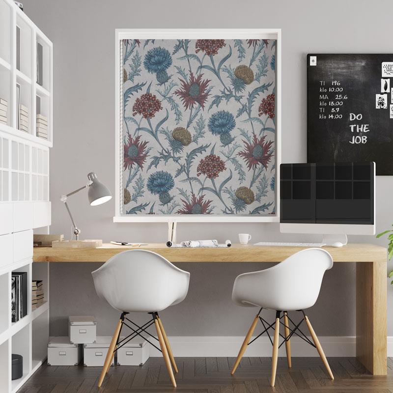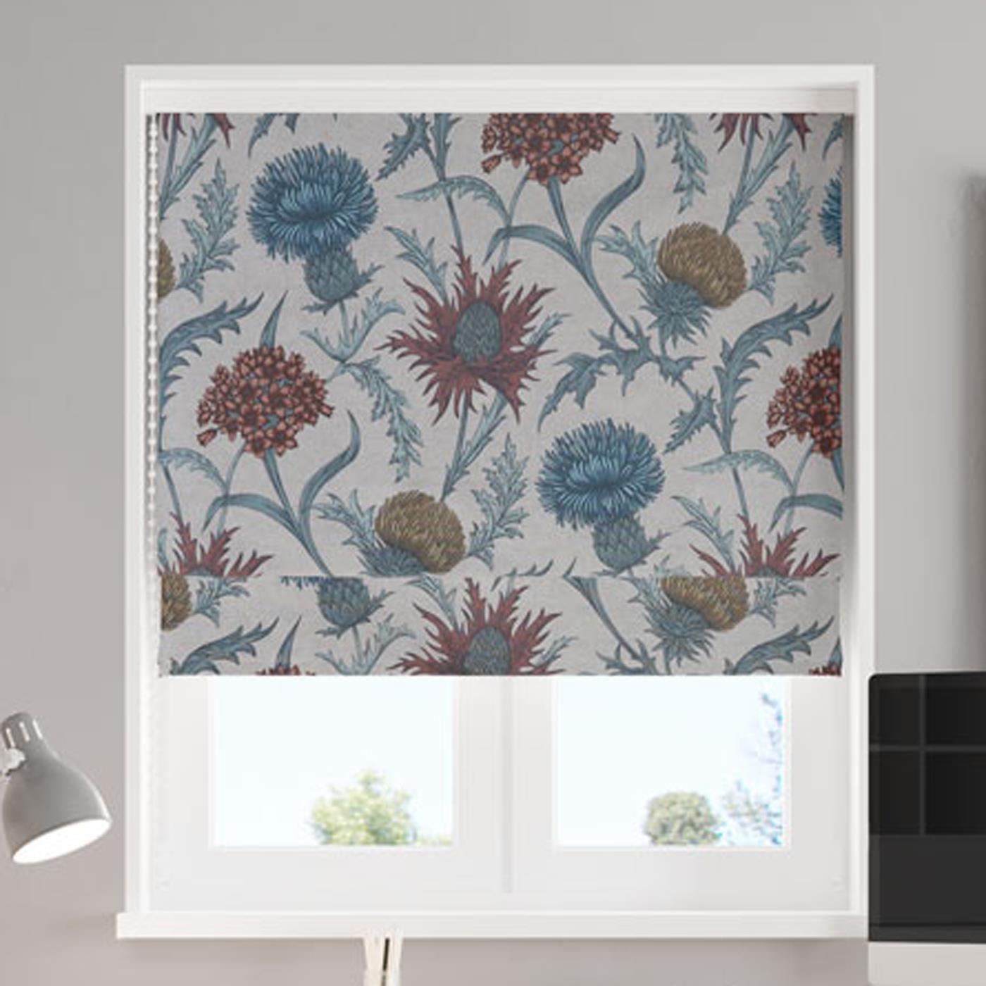 Add a splash of colour to your home with the beautiful Acanthium Autumn made to measure roman blind. The 100% cotton fabric has a beautiful vibrant floral print of flowers and thistles which are sure to make a statement in any room.