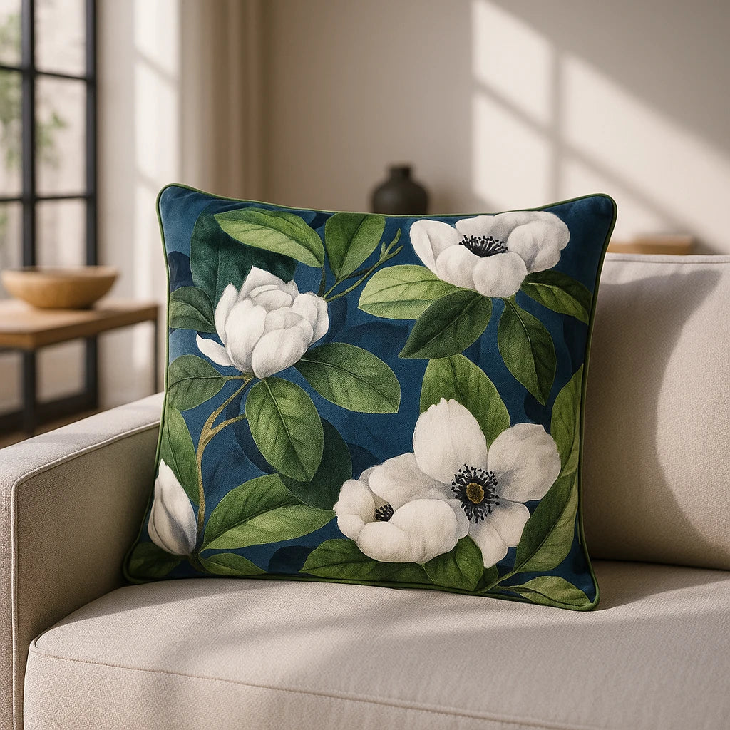 Introducing the Soiree Alaya cushion, a tantalising delight that embodies the essence of luxury. Picture this - a floral print design, meticulously etched upon a sensuous teal velvet background, beckoning you into a world of indulgence. But wait, there's more. Turn over this exquisite piece of art to reveal a contrasting white velvet reverse, a testament to the duality of desire and sophistication. And as your fingers trace the smooth edges, you'll discover piped detailing that adds a touch of impeccable refinement. Settle into its embrace, feeling the plushness of velvet against your fingertips, and immerse yourself in its allure.