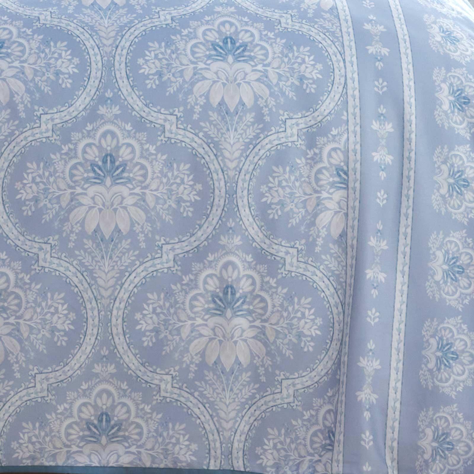 Introducing the Alexia duvet cover set by Appletree Heritage, where beauty and versatility combine to create an enchanting bedroom oasis. Adorned with a mesmerising floral ogee print on a captivating blue base, this reversible set allows you to effortlessly switch up your decor to suit your mood. Made from luxurious 200 thread count Cotton sateen with impeccable piped edges, it showcases our unwavering commitment to British heritage and exquisite craftsmanship. Embrace the allure of elegance and comfort and let this duvet set transform your bedroom into a haven of timeless beauty.
