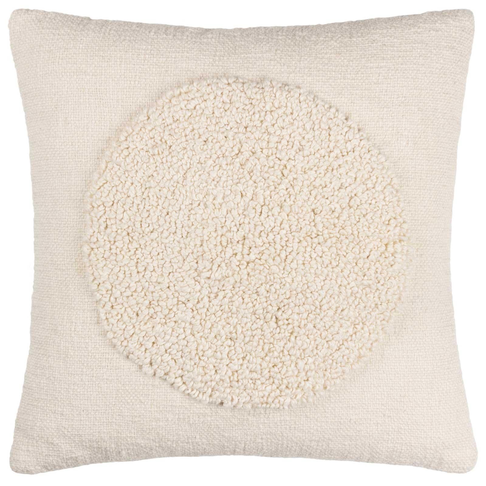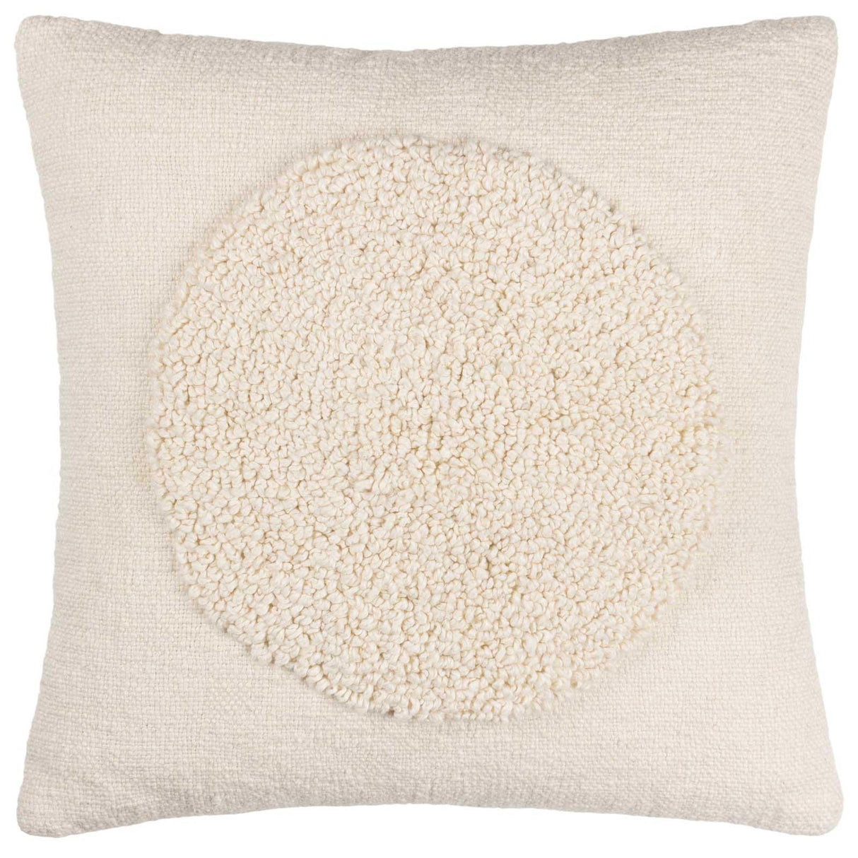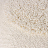 • Featuring an abstract tufted boucle circle surrounded by a woven cotton face