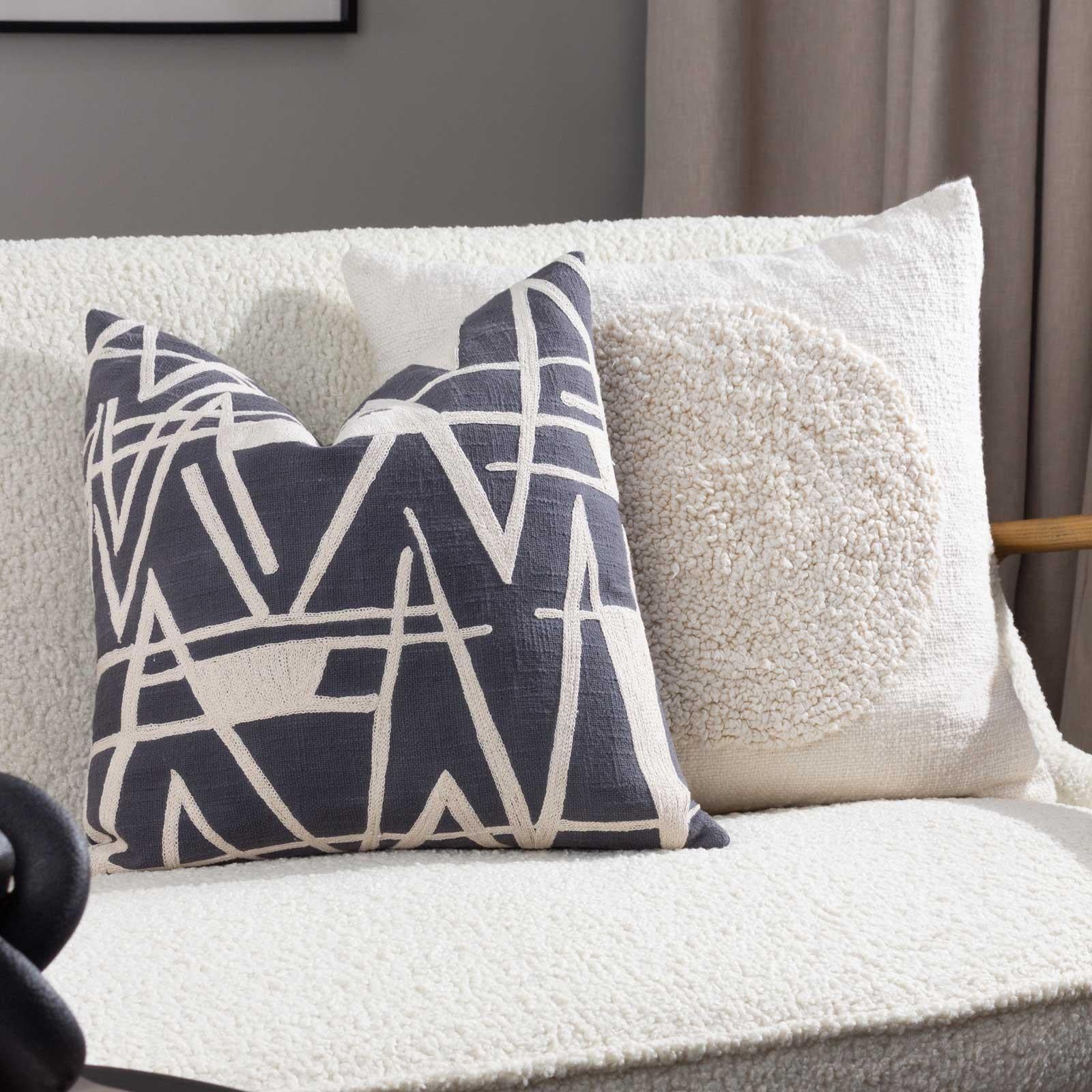 Neutrals are where texture can take centre stage. The Almo cushion cover is a beautiful abstract design, artistic in its minimal approach. Featuring a raised boucle circle, this design is surrounded by a heavily woven cotton face and is complete with a plain cotton reverse. Ideal for layering within a relaxed interior.