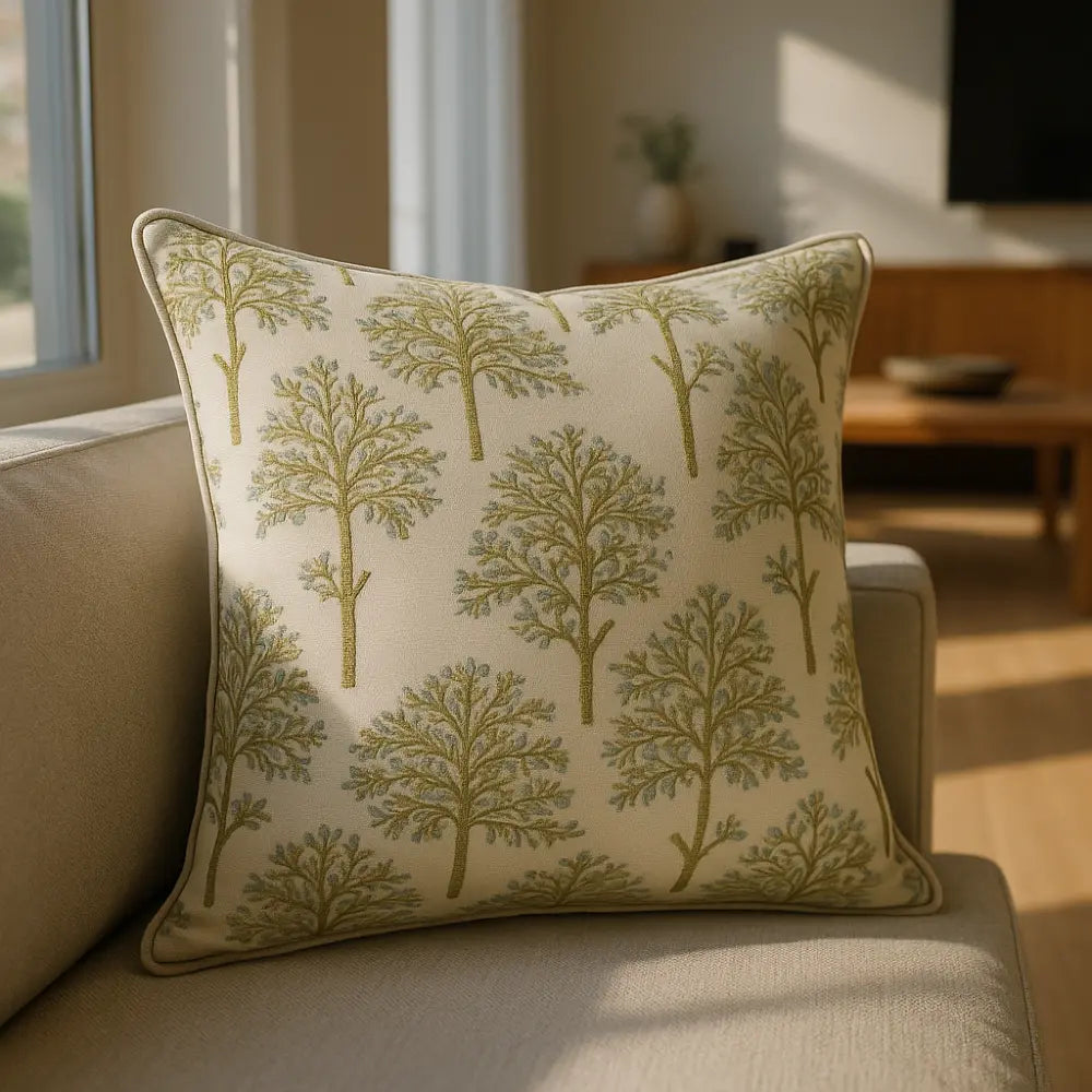 • Refined woven texture creates a subtle raised feel on the tree motifs, enhancing depth and tactile appeal.