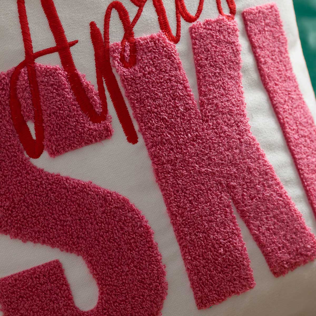 Crafted for both comfort and style, the Après Ski cushion is perfect for layering on sofas, chairs, or beds, adding a touch of warmth and personality to your home. Its textured text not only enhances its aesthetic appeal but also invites you to snuggle up and enjoy the cosy atmosphere it creates. Whether you're hosting a winter gathering or simply enjoying a quiet evening in, this cushion is the perfect companion.