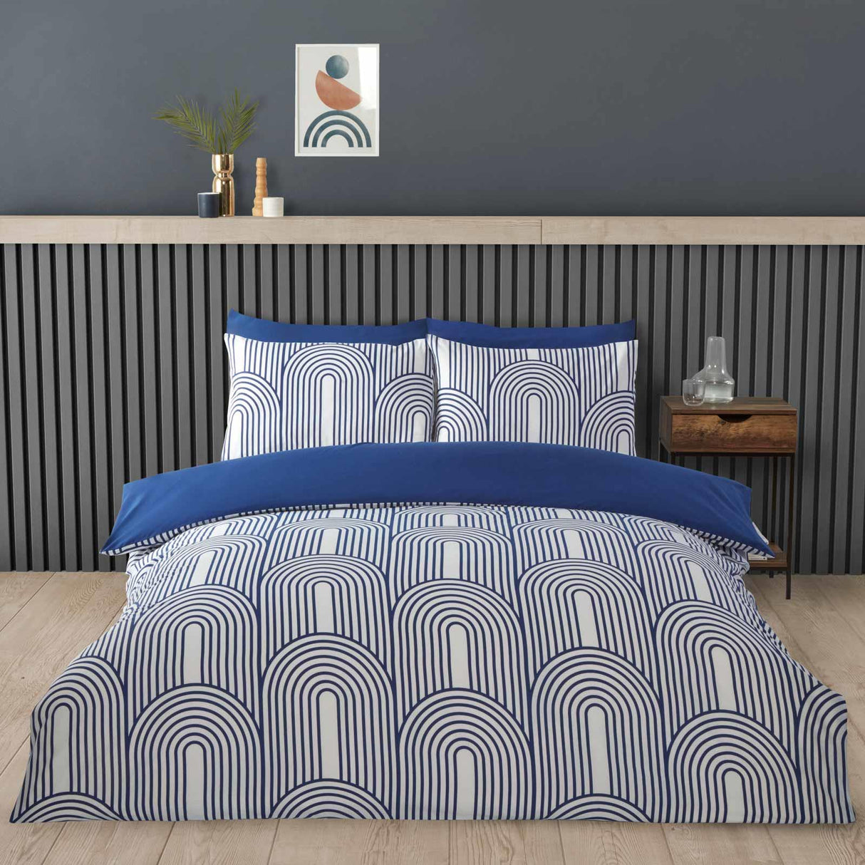 Transform your bedroom into a stylish oasis with our stunning duvet cover set featuring a contemporary geometric pattern. Available in two soothing colourways, this bedding set adds a fresh, modern feel to your space while ensuring a restful night's sleep thanks to its soft and cosy fabric. Complete with matching pillowcases, this duvet cover set will elevate your bedding game and enhance your interior décor.