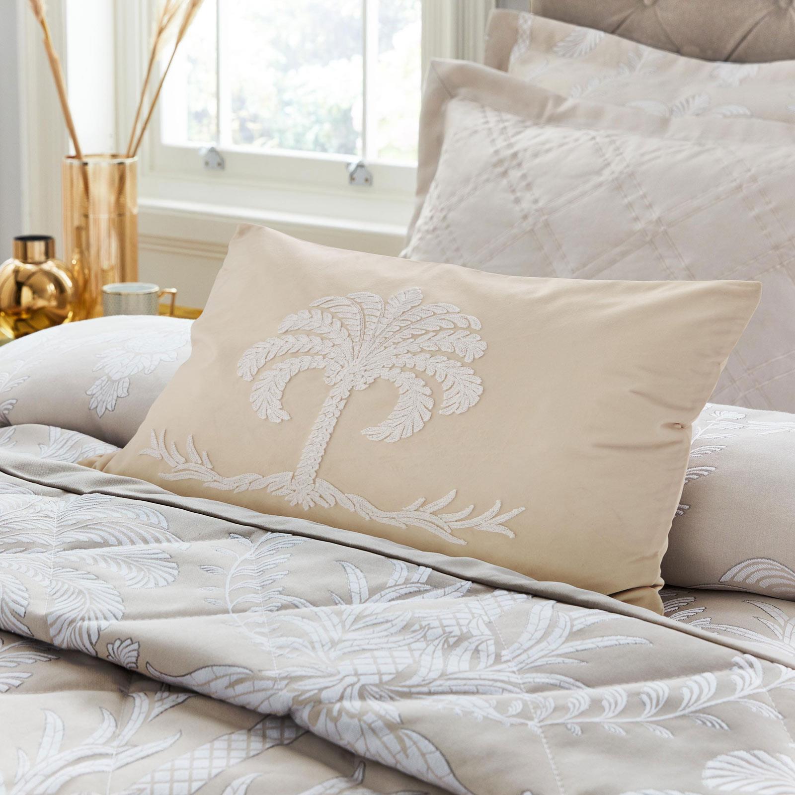 Created using the classic skill of crewel embroidery, this beautiful Avalon cushion is truly a work of art. Featuring a decorative embroidered palm tree, evocative of the elegance of the Art Deco era in soft touch fabric in a beautiful natural shade, it will make an elegant addition to your boudoir.
