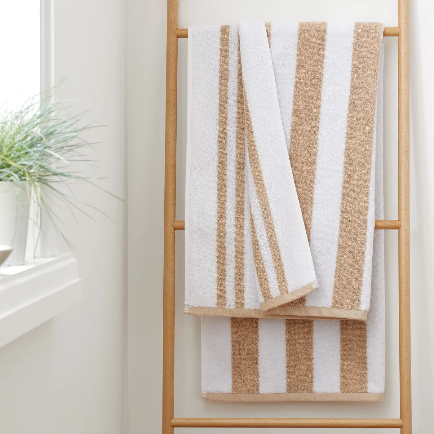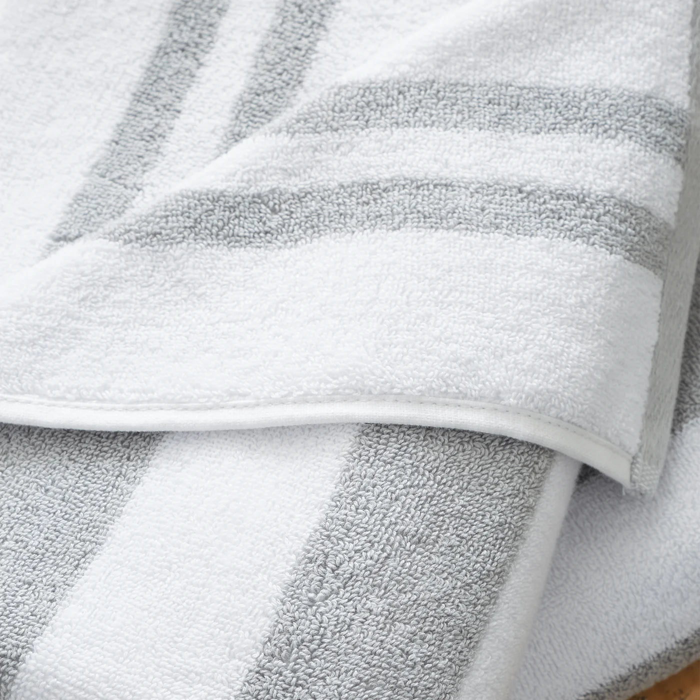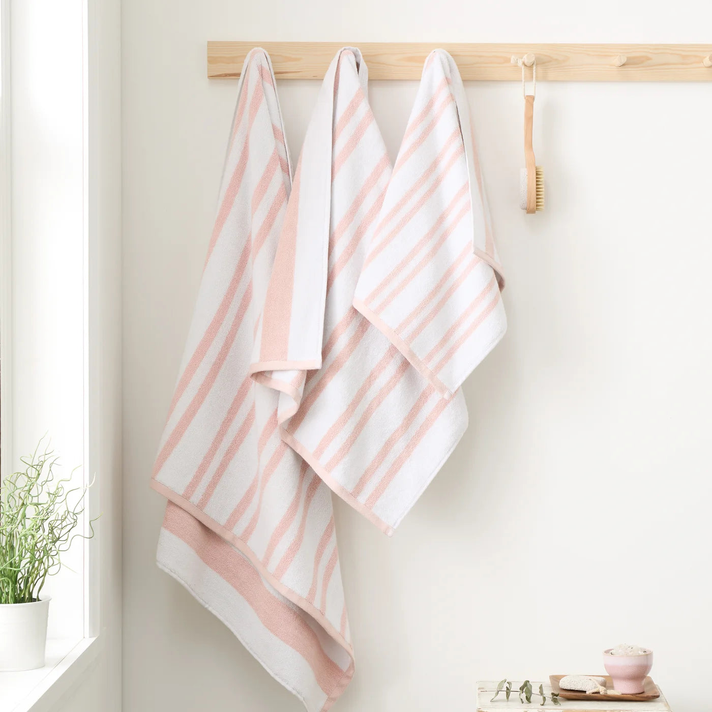 Treat yourself to the luxury of our pure cotton Jacquard stripe towels, boasting a timeless design that adds a touch of elegance to your bathing routine. With the versatile option to choose between a classic jacquard stripe or a charming smaller stripe, these towels offer a fresh and sophisticated look for any bathroom decor.