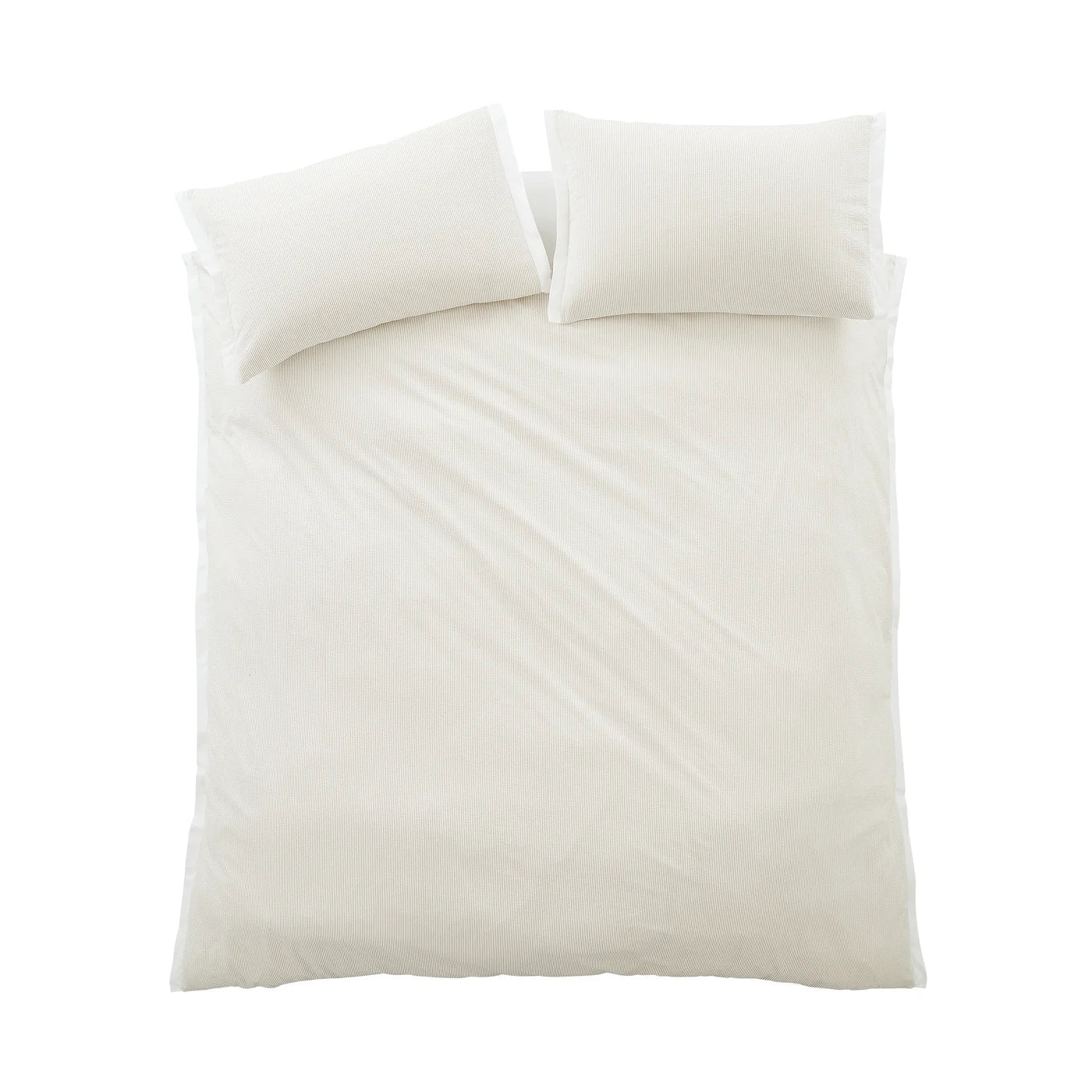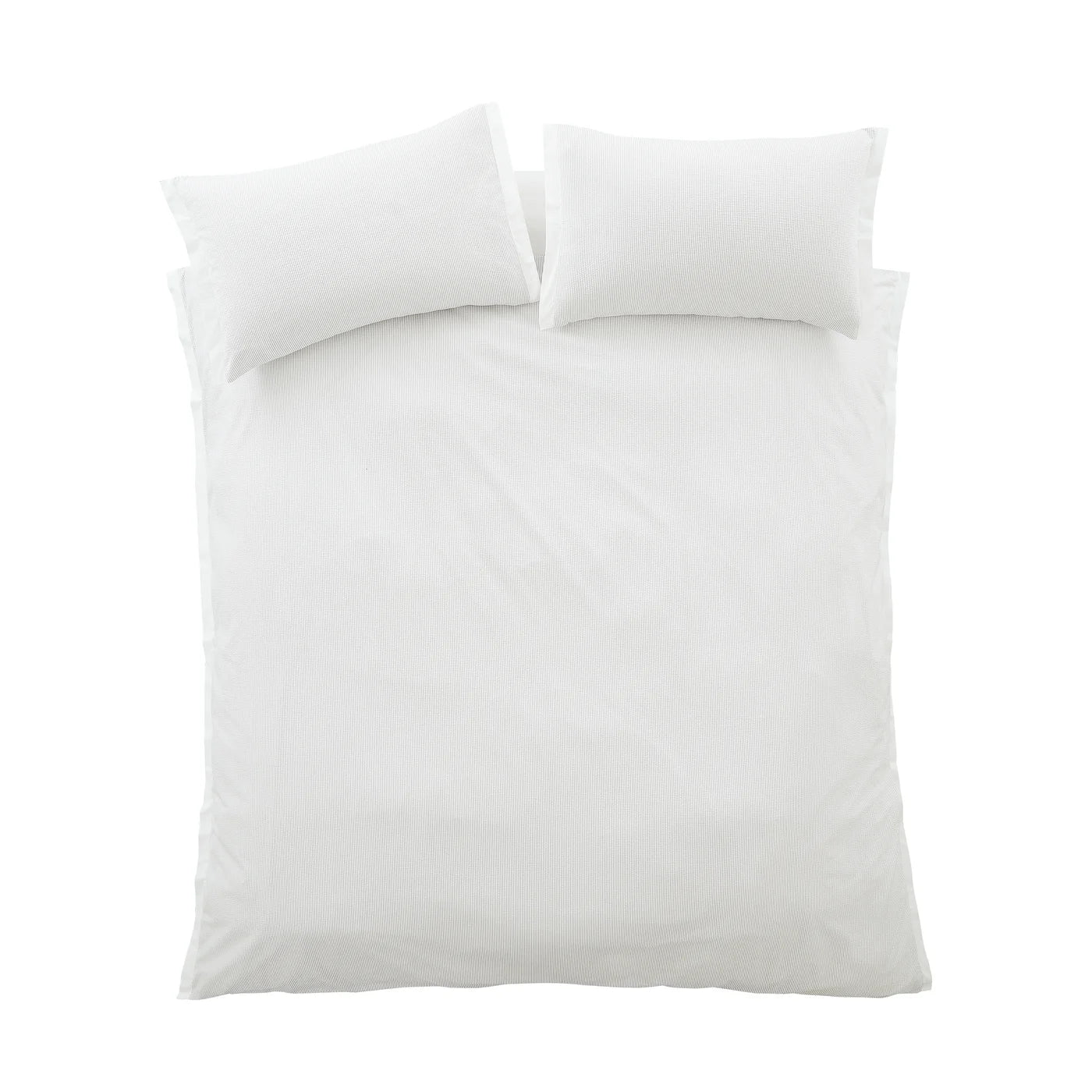 Elevate your sleep space with the effortless texture with this woven seersucker duvet set creating a soft and calming space. Designed with subtle tonal stripes, this set blends laid-back sophistication with breathable comfort , perfect for creating a calm, contemporary retreat. Dream in blissful comfort under wonderfully soft 200 thread count percale cotton, a beautiful naturally breathable fibre that encourages a better night’s sleep.