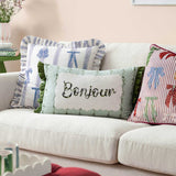 Infuse your living space with a touch of Parisian elegance through the stunning Bonjour Cushion. This chic home accessory showcases a refined design, featuring the word 'Bonjour' artfully printed on sumptuous cotton fabric, creating an inviting atmosphere that radiates warmth and charm. Crafted from premium quality materials, this cushion not only offers a luxuriously soft feel but is also built to endure the rigours of daily use, ensuring it remains a staple in your home for years to come. The cushion is adorned with a delightful contrasting ruffled frill trim, adding a whimsical flair that enhances its sophisticated appeal, making it a perfect accent piece for any room in your home.
