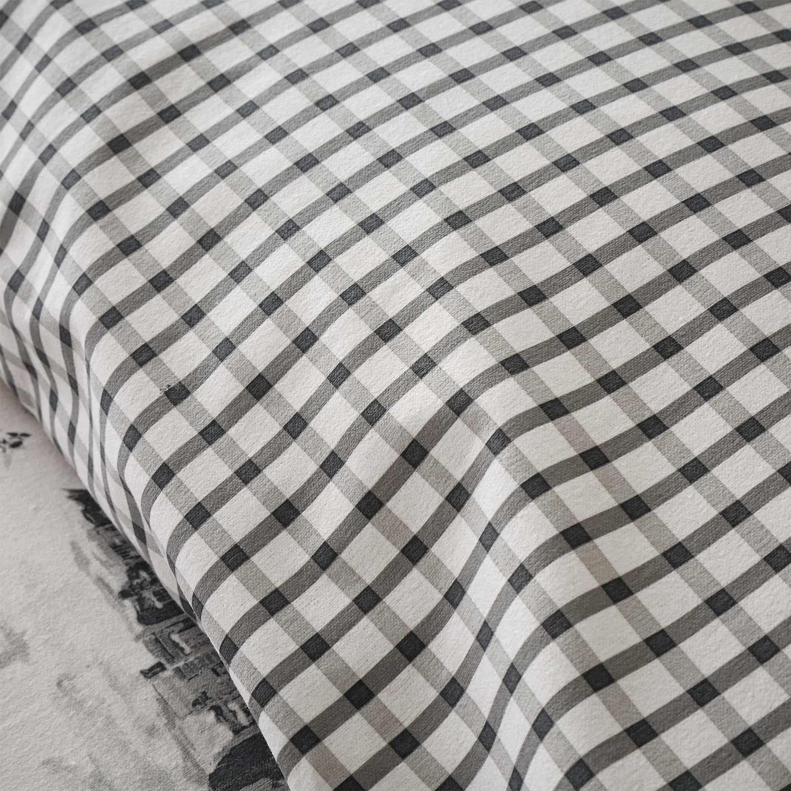 Recreate the charm of the snowy peaks in your bedroom with this 100% brushed Cotton bedlinen. This fully reversible bedding set features a breath-taking alpine village scenes on a cool natural base. On the reverse, this set showcases a contrasting small check pattern, adding versatility and style to your bed.