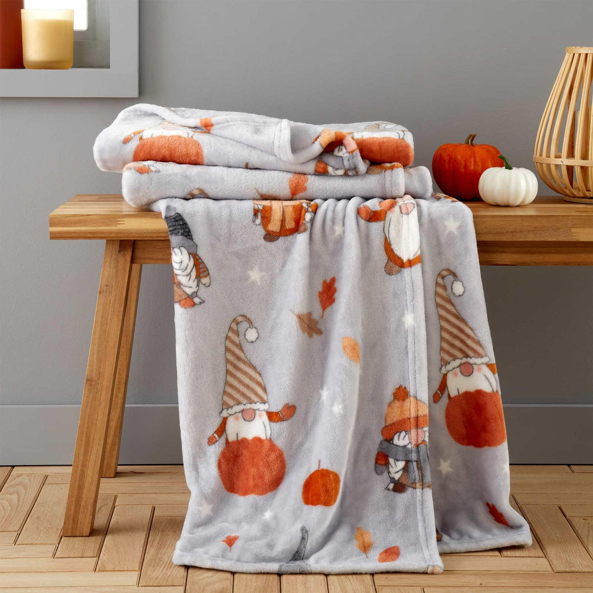 Bring the warmth and charm of autumn to your living space with this cosy throw. Featuring cute and quirky autumnal gnomes on a stylish grey base, this throw is perfect for adding a touch of whimsy to your home.