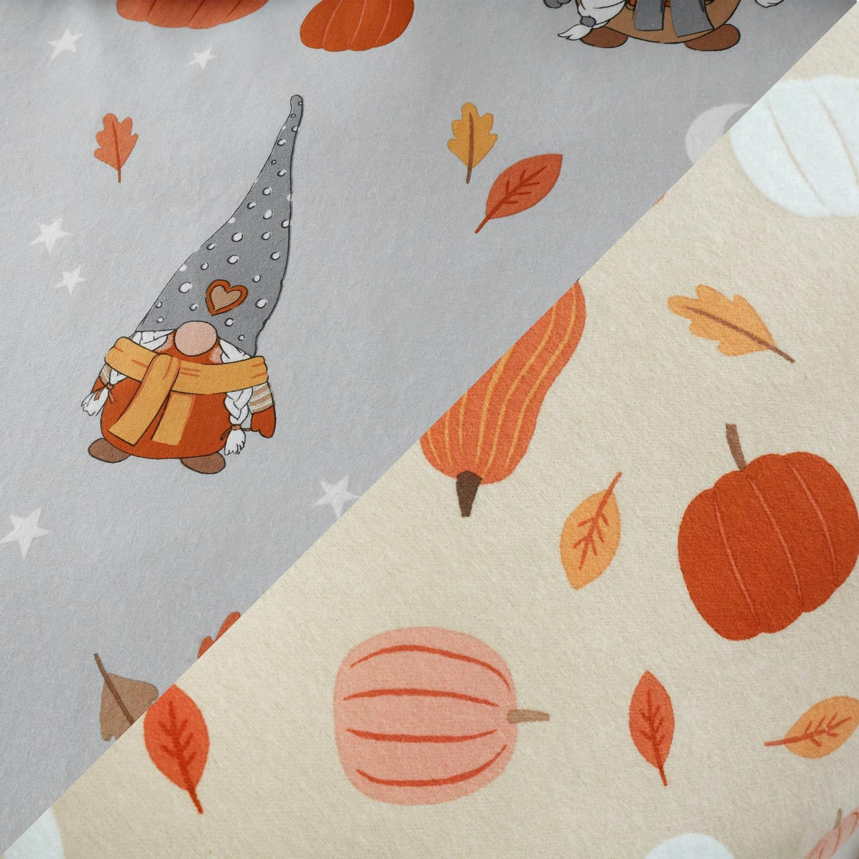 Bring the warmth and charm of autumn to your bedroom with this 100% Cotton reversible brushed bedlinen. Featuring cute and quirky autumnal gnomes on a stylish grey base, this bedding set is perfect for adding a touch of whimsy to your bed. Fully reversible, the bed linen showcases an array of colourful pumpkins and winter vegetables on a natural base, capturing the essence of the season. Crafted with soft and cosy 100% brushed Cotton, this bed linen promises to keep you warm and comfortable throughout the night.