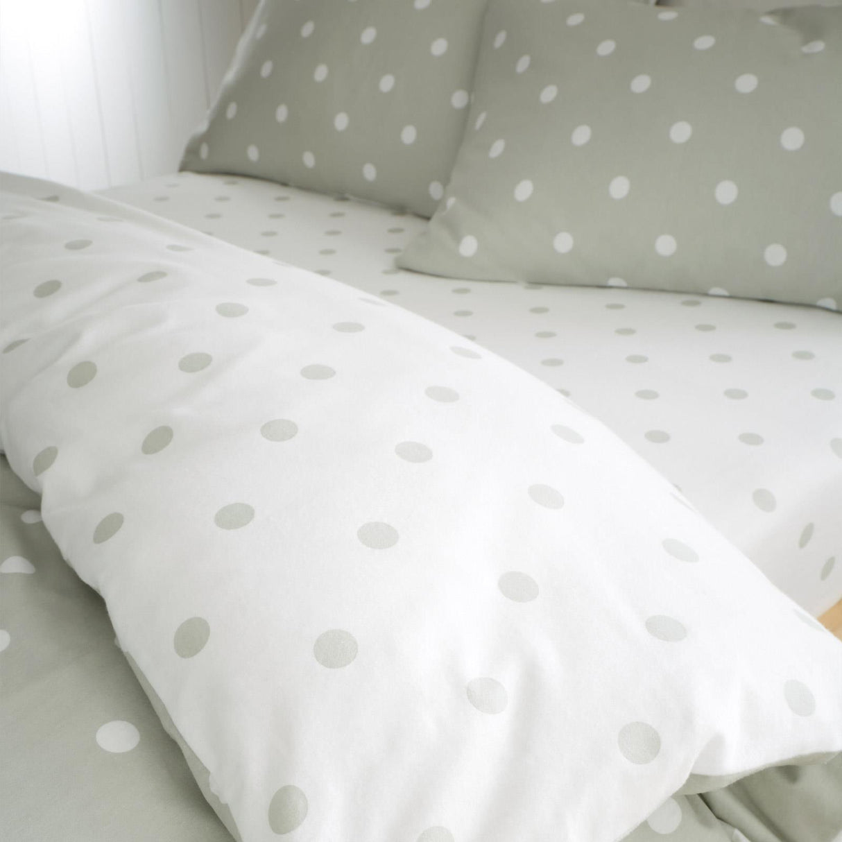 Transform your bedroom into a cosy retreat with our charming fitted sheet featuring a delightful polka dot design. This playful pattern adds a touch of serenity to your space, making it the perfect addition for those who appreciate both style and comfort. Crafted from 100% responsibly sourced brushed cotton, this sheeting ensures a warm and inviting atmosphere for restful nights.