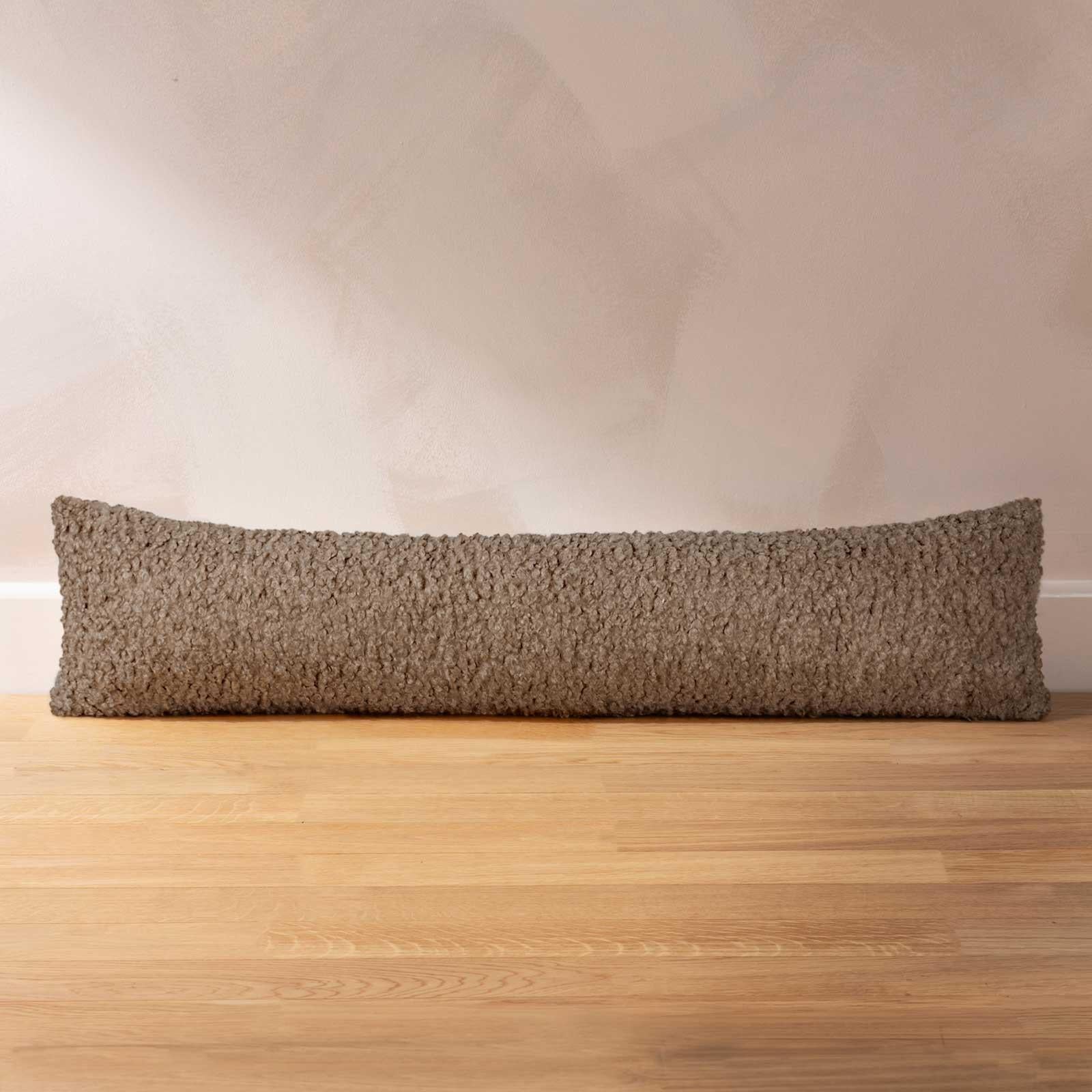 What a way to keep out the cold! Create depth with the minimalist draught excluder, crafted from exquisitely soft, chunky textured boucle shearling fabric. This stylish accessory sits snugly under your door, effectively blocking draughts while enhancing your home’s aesthetic with a soft and relaxing layered look. Available in a range of muted tones, this warming draught excluder is the perfect blend of functionality and design!