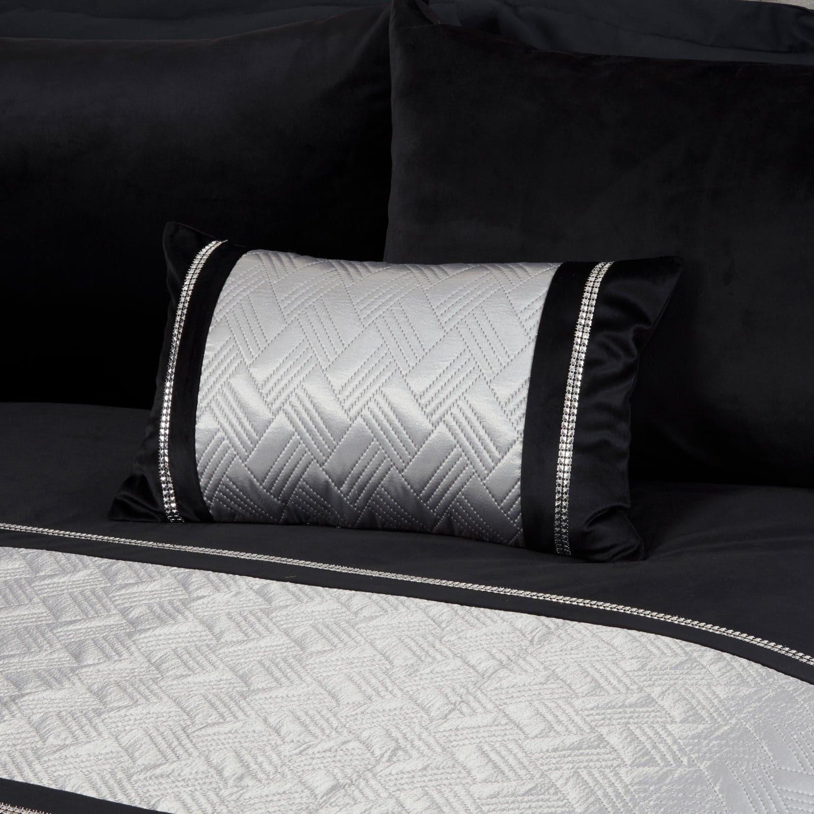 Elevate your living space with this luxurious boudoir cushion, expertly designed to add a touch of elegance to any room. Featuring a stunning quilted satin panel adorned with stylish studs, this cushion is beautifully complemented by an opulent velvet base, making it a chic accessory for your bedding ensemble or drapery.