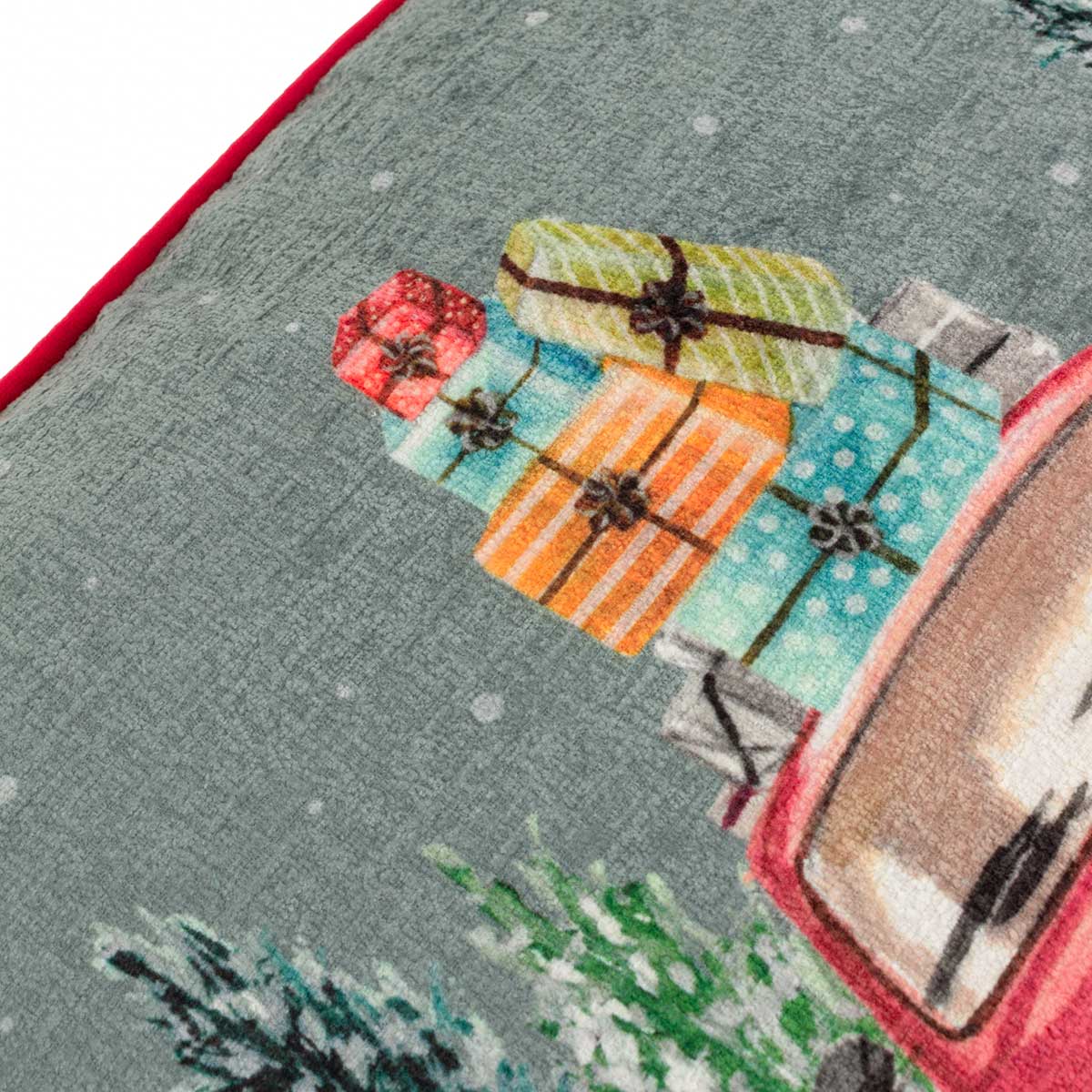 Bring the festive spirit into your home with the enchanting Car Scene cushion, showcasing a delightful watercolour illustration of a vibrant red car adorned with Christmas presents. This charming design captures the essence of the holiday season, making it an ideal accent for your living space. The cushion is not only visually appealing but also features a luxuriously soft velvet reverse, ensuring comfort and warmth during those chilly winter nights. The elegant piped trim adds a touch of sophistication, making it a perfect blend of style and festive cheer.