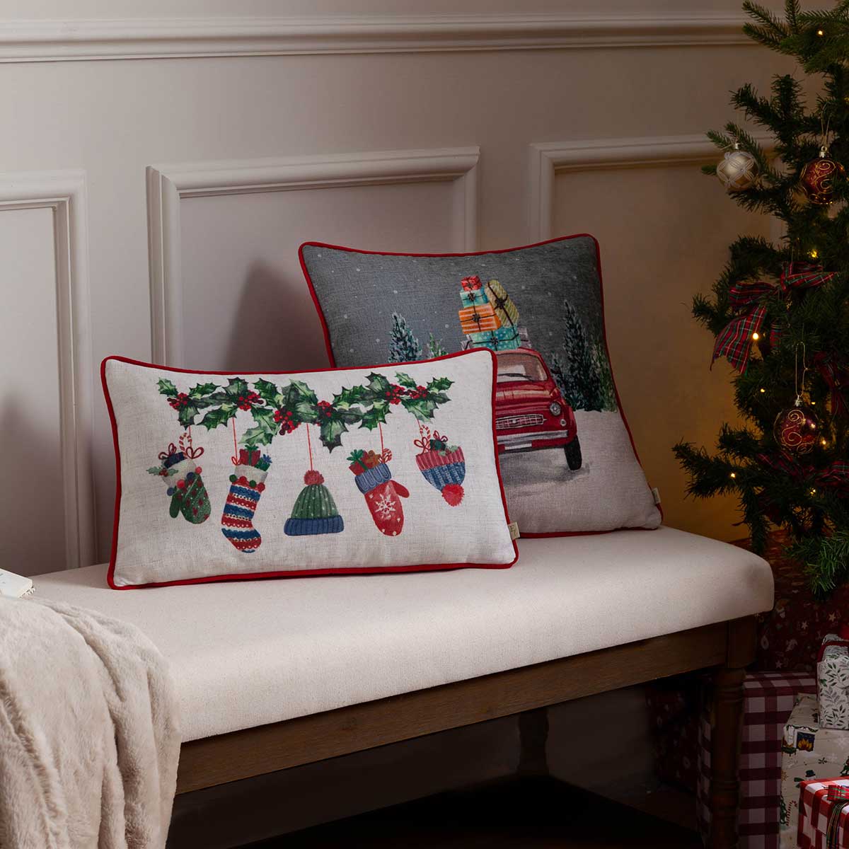 Elevate your holiday décor with this delightful cushion that not only enhances your interior but also brings a warm, inviting atmosphere to your home. Perfect for snuggling up on the sofa or adding a festive touch to your bedroom, the Car Scene cushion is a must-have accessory for celebrating the joy of the season.