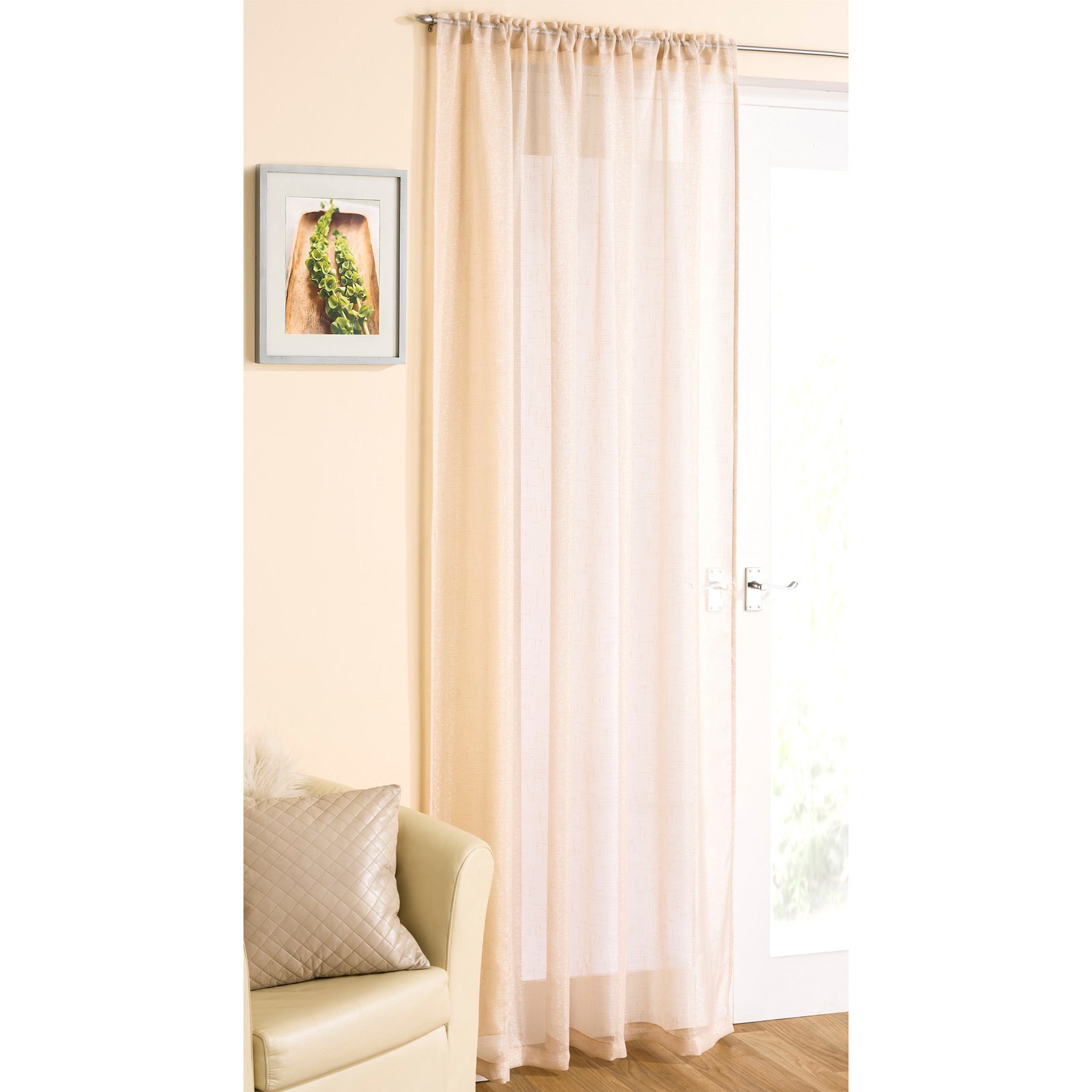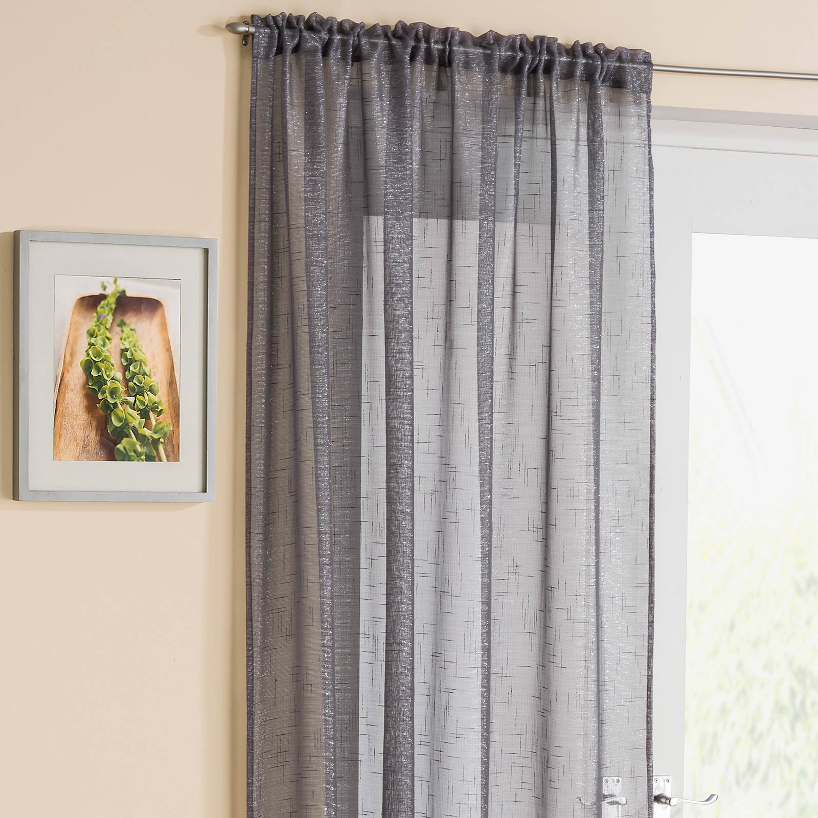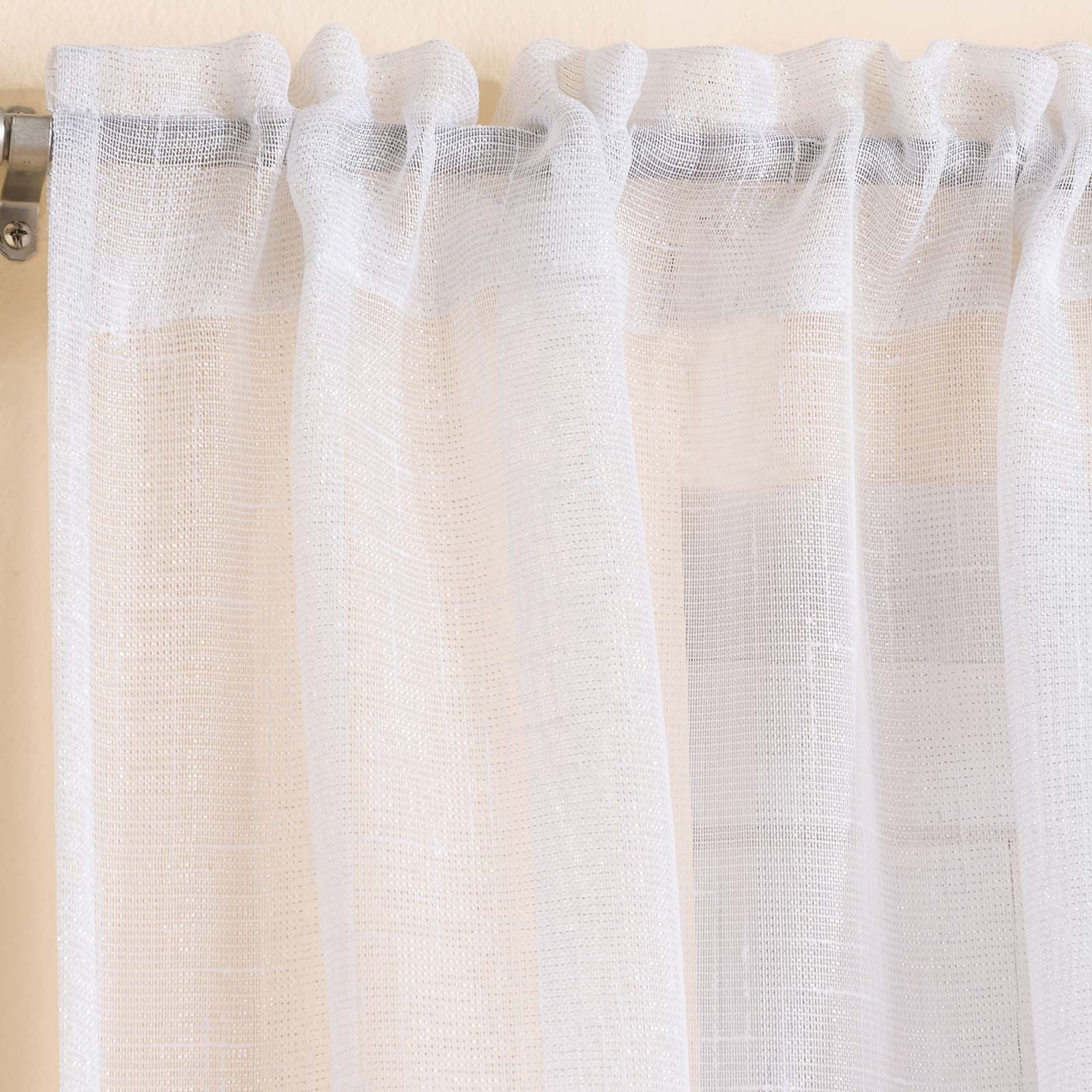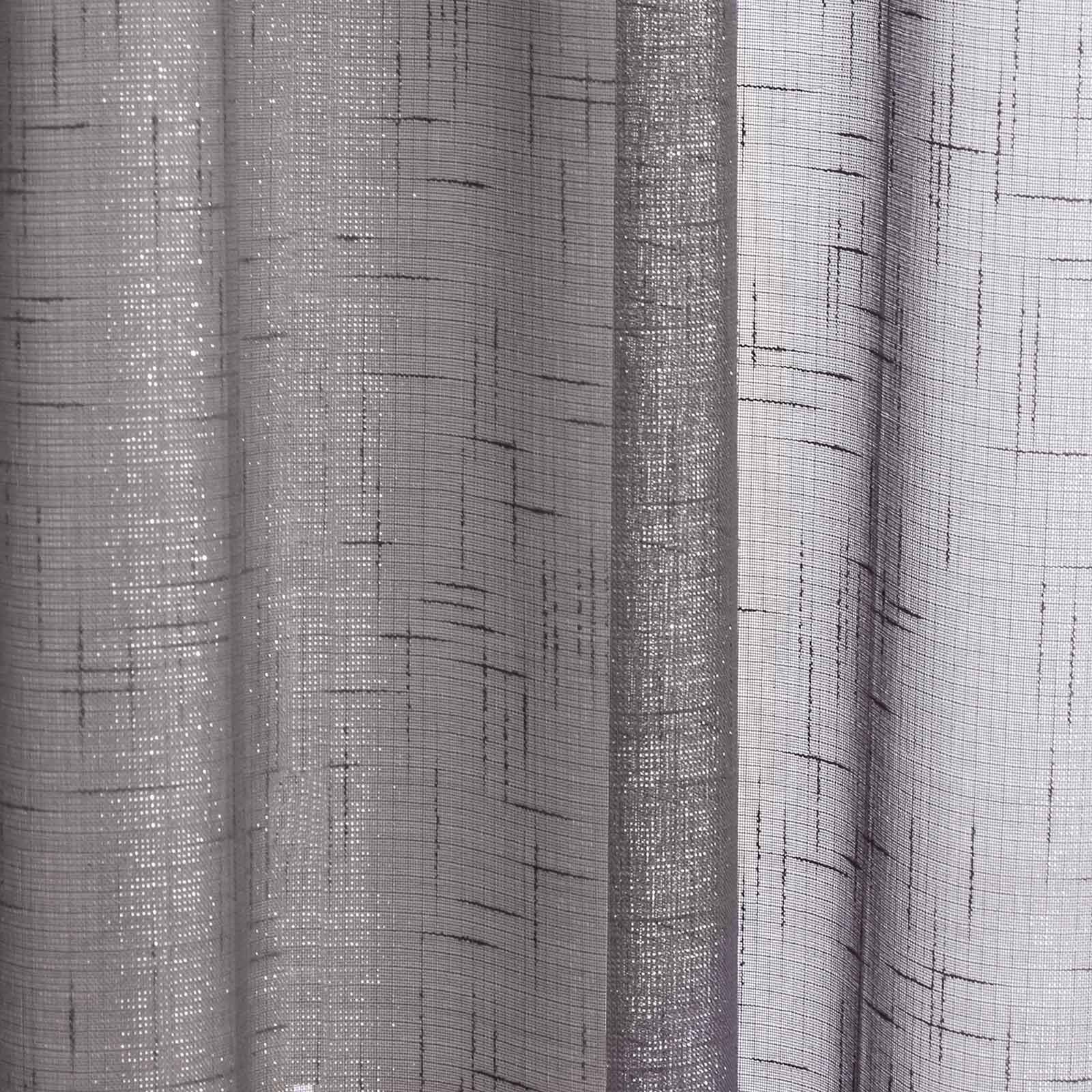 Transform your living space with these elegant slot top voile curtain panels, designed to bring a touch of sophistication and lightness to your windows. Each panel features a subtle metallic thread woven throughout a luxurious linen effect fabric, making them an ideal choice for enhancing any room's décor. Perfect for those who want to freshen up their interiors, these versatile panels are fitted with a rod pocket heading, allowing for easy installation on a thin pole or rod.