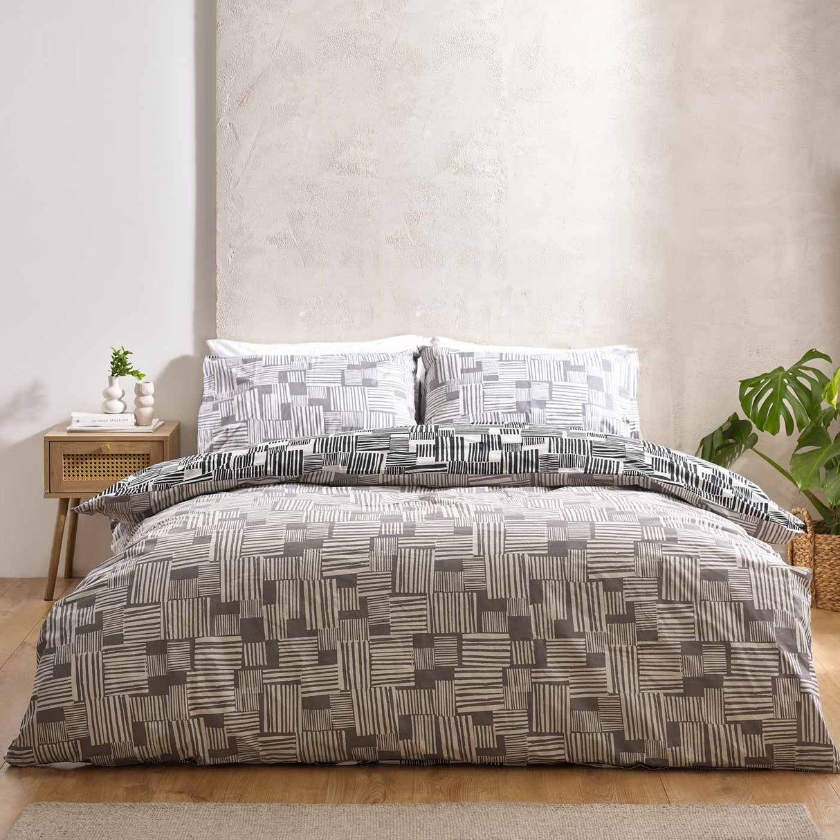 Elevate your sleep space with this bold, graphic block design, featuring a striking geometric pattern which will seamlessly enhance any decor styles. Fully reversible, this set offers complementary colour combinations on both sides to create a striking stand-out look. Created from easy-care recycled polyester and soft cotton, blended for everyday use.