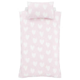 Fall in love with bedtime! This cute brushed cotton hearts design is a sweet symphony of pink and white, sprinkled with love and dreams. Fully reversible, so you can switch up the sweetness whenever you like. Crafted with soft and cosy responsibly sourced brushed Cotton, this bedlinen promises to keep your little one warm and comfortable throughout the night.