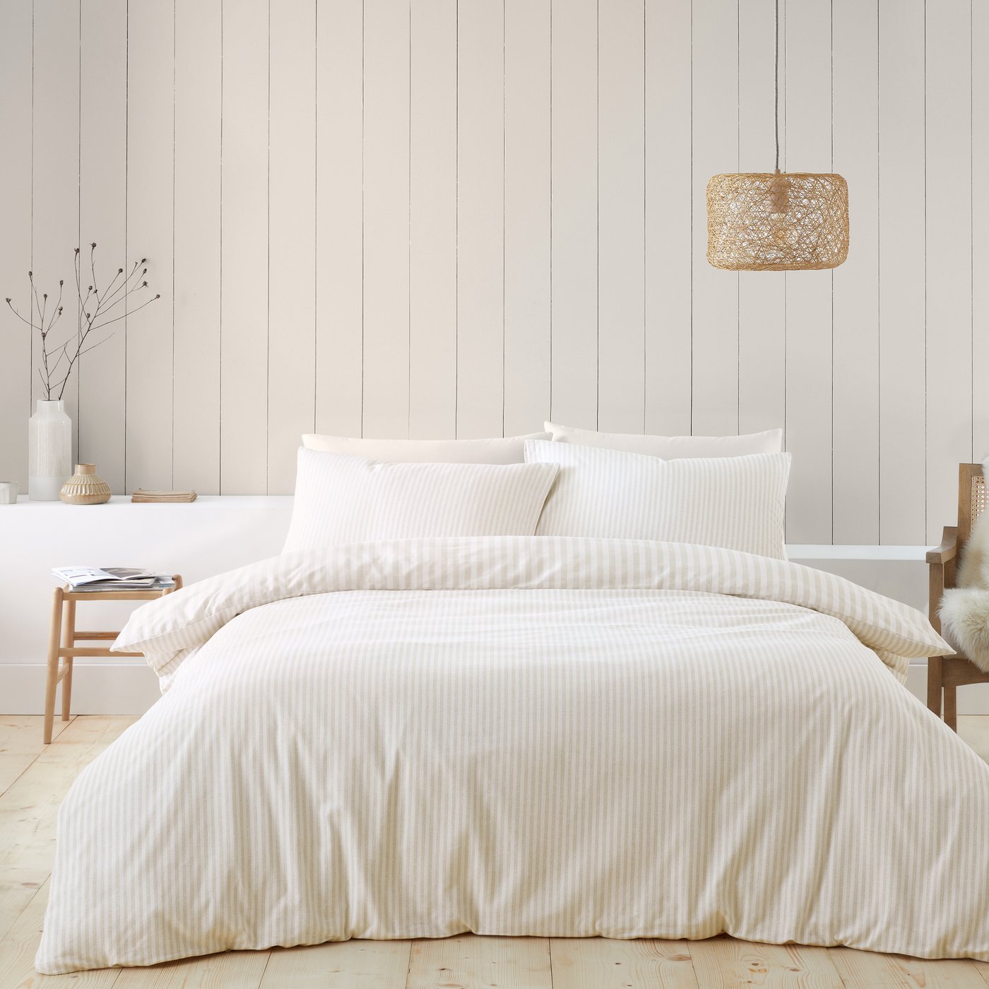 Catherine Lansfield Brushed Stripe Cotton Reversible Super King Duvet Cover Set with Pillowcases