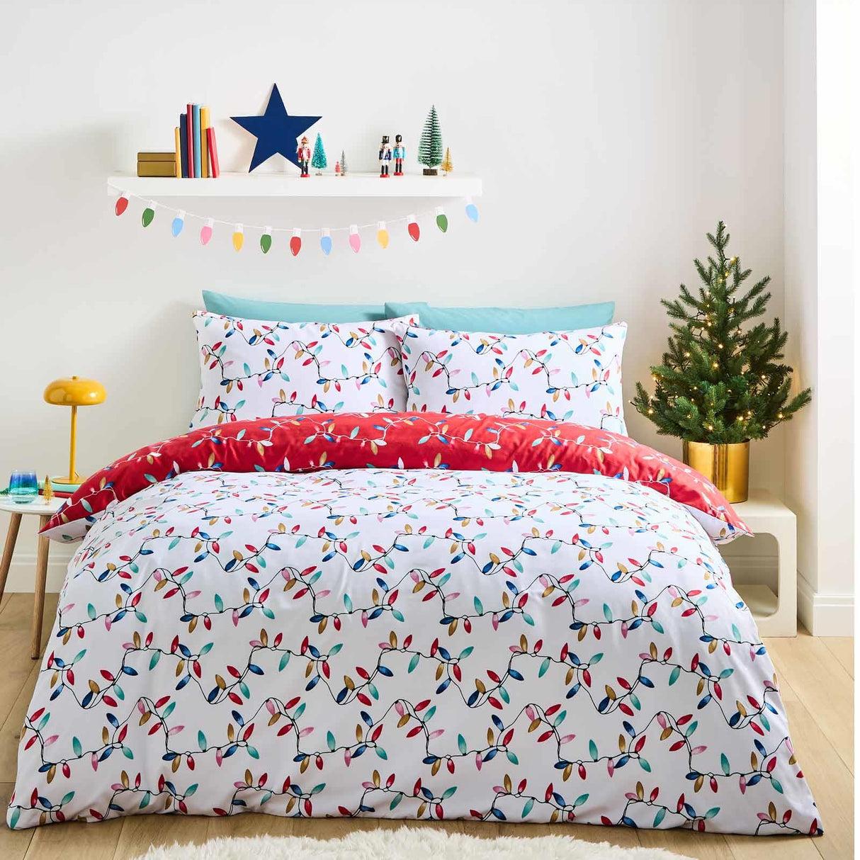 Bring the joy of your Christmas tree to your bedroom with this colourful fairy tree lights duvet set. Fully reversible with the choice of festive red or snowy white to suit your décor. Easy care and quick to dry, this microfibre set is a time-saving and hassle-free bedding option during the holiday season.