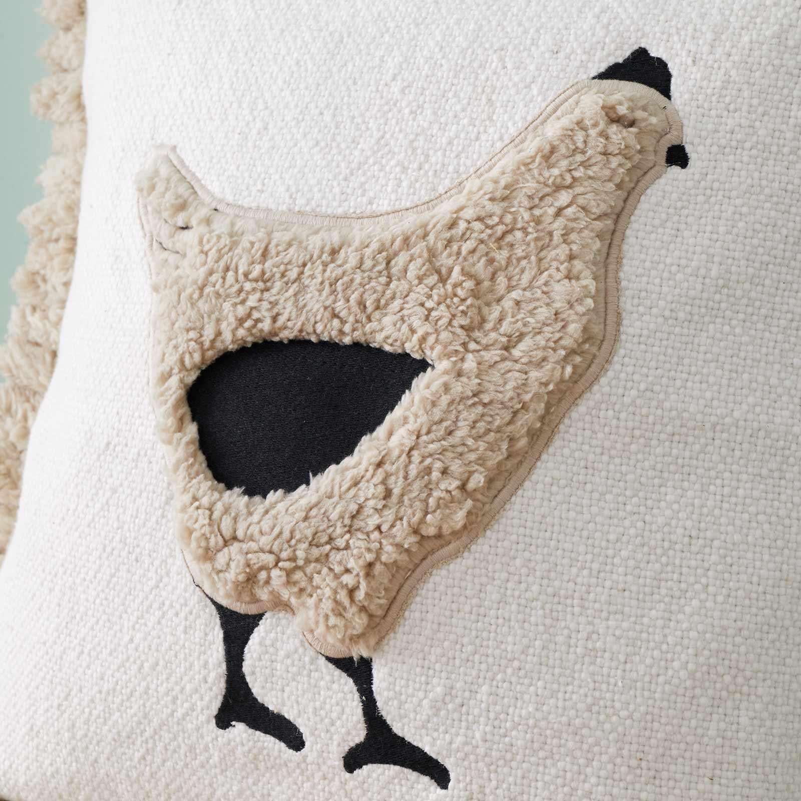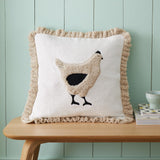 Created in soft natural tones, this cushion features a beautifully appliqued chicken design, adding a touch of whimsy and charm to your home decor. The frilled edges enhance its quintessential country appeal, evoking feelings of rustic simplicity and comfort.