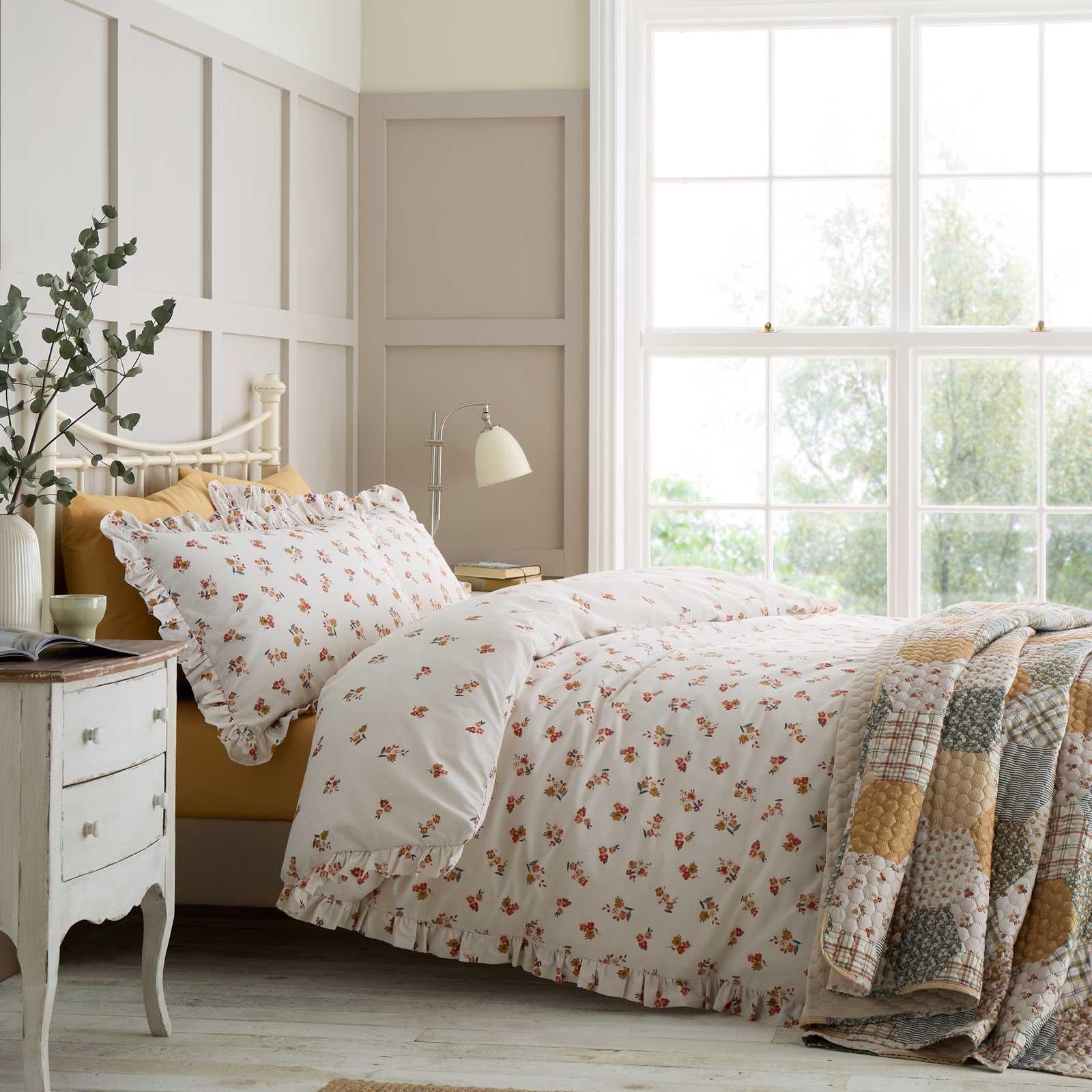 Embrace the beauty of nature and create a bedroom that's always in bloom. Featuring a delightful floral print frill set against a calming cream base. Fully reversible with an all over ditsy floral offering two stylish looks in one. Created from easy-care recycled polyester and soft responsibly sourced cotton, blended for everyday use.