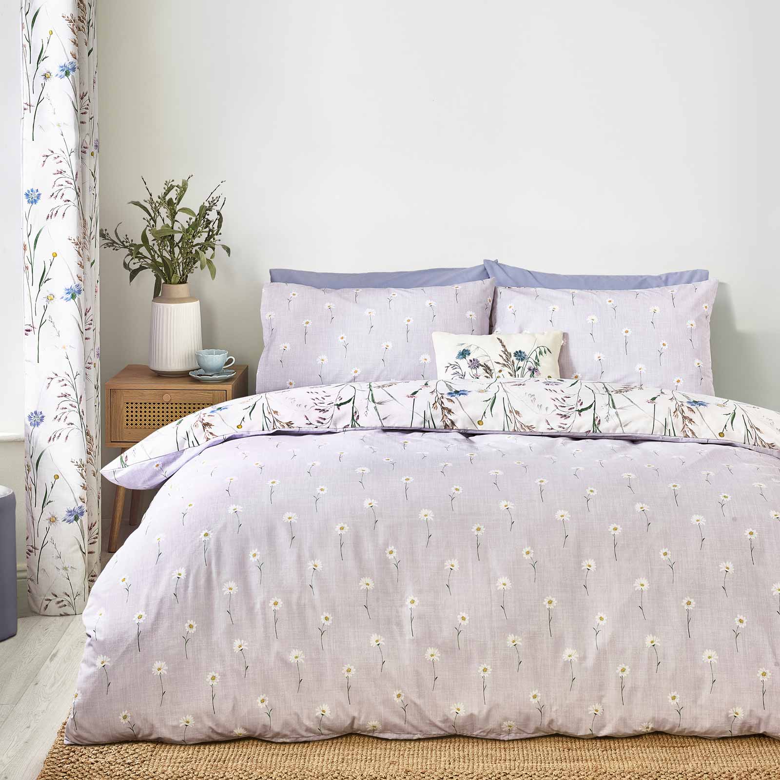 Bring a charming countryside feel to your bedroom, with this delicate floral meadow design featuring wildflowers and grasses on a soft cream background. Fully reversible, with a ditsy daisy offering two stylish looks in one. Created from easy-care recycled polyester and soft cotton, blended for everyday use.