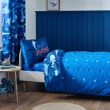 Dive into a sea of adventure with this totally Jawsome bedding set, featuring playful sharks swimming across a deep blue background. This vibrant design is perfect for little ocean explorers, sparking imagination and fun. Created from easy-care recycled polyester and soft cotton, blended for everyday use.