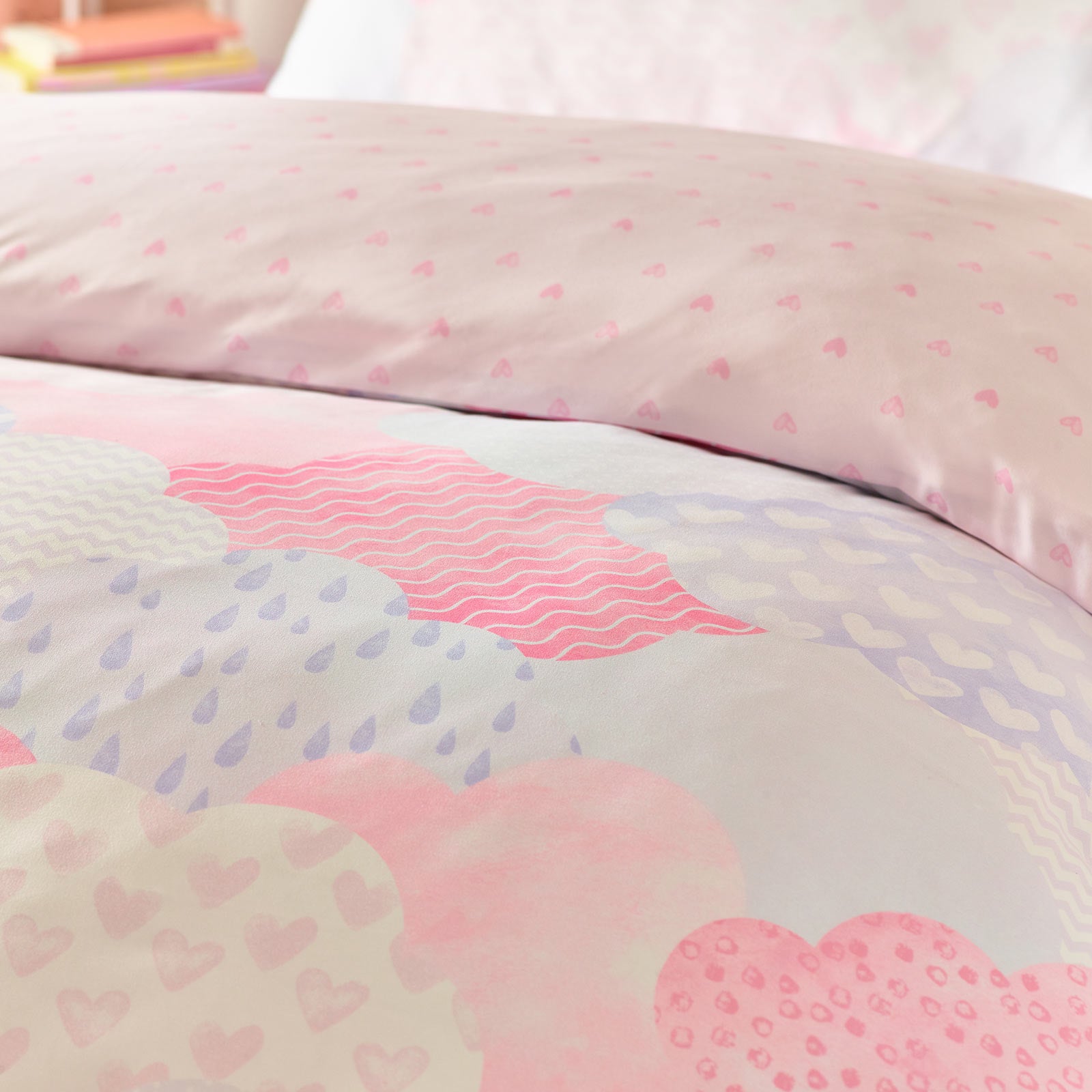 Drift off to dreamland with this playful bedding set featuring soft, fluffy clouds in pretty pastel shades. Fully reversible with a cute heart pattern on the reverse for two adorable looks in one. Easy care and quick to dry, this microfibres set is a time-saving and hassle-free bedding option.