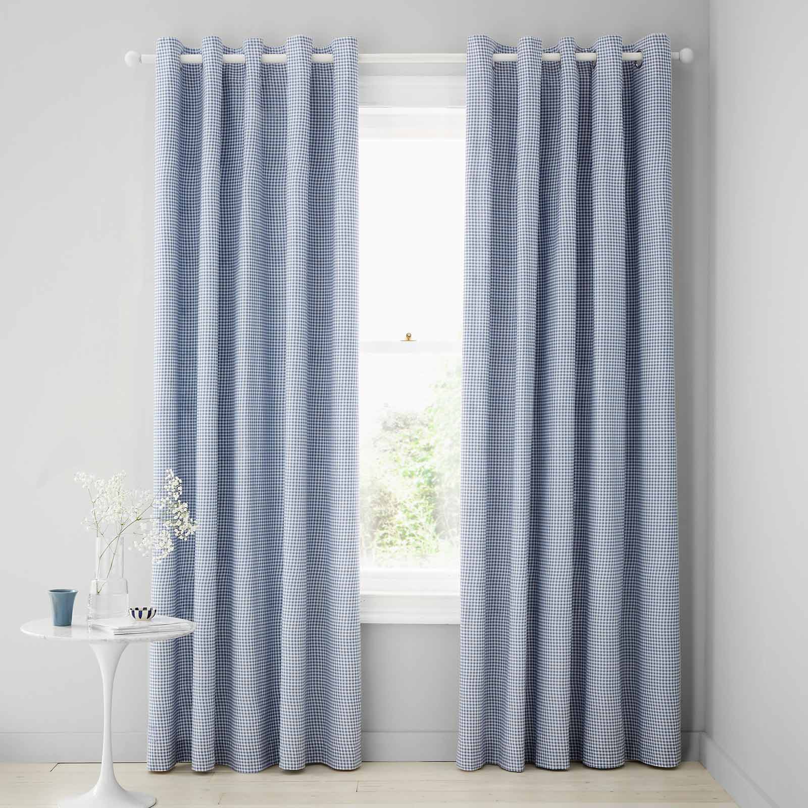 Bring the essence of the countryside into your main bedroom with this charming curtain pair, showcasing a delicate blue floral design and frilled edges for added charm. Fully reversible design with a blue gingham pattern provides an additional layer of versatility. Created from easy-care recycled polyester and soft cotton, blended for everyday use.