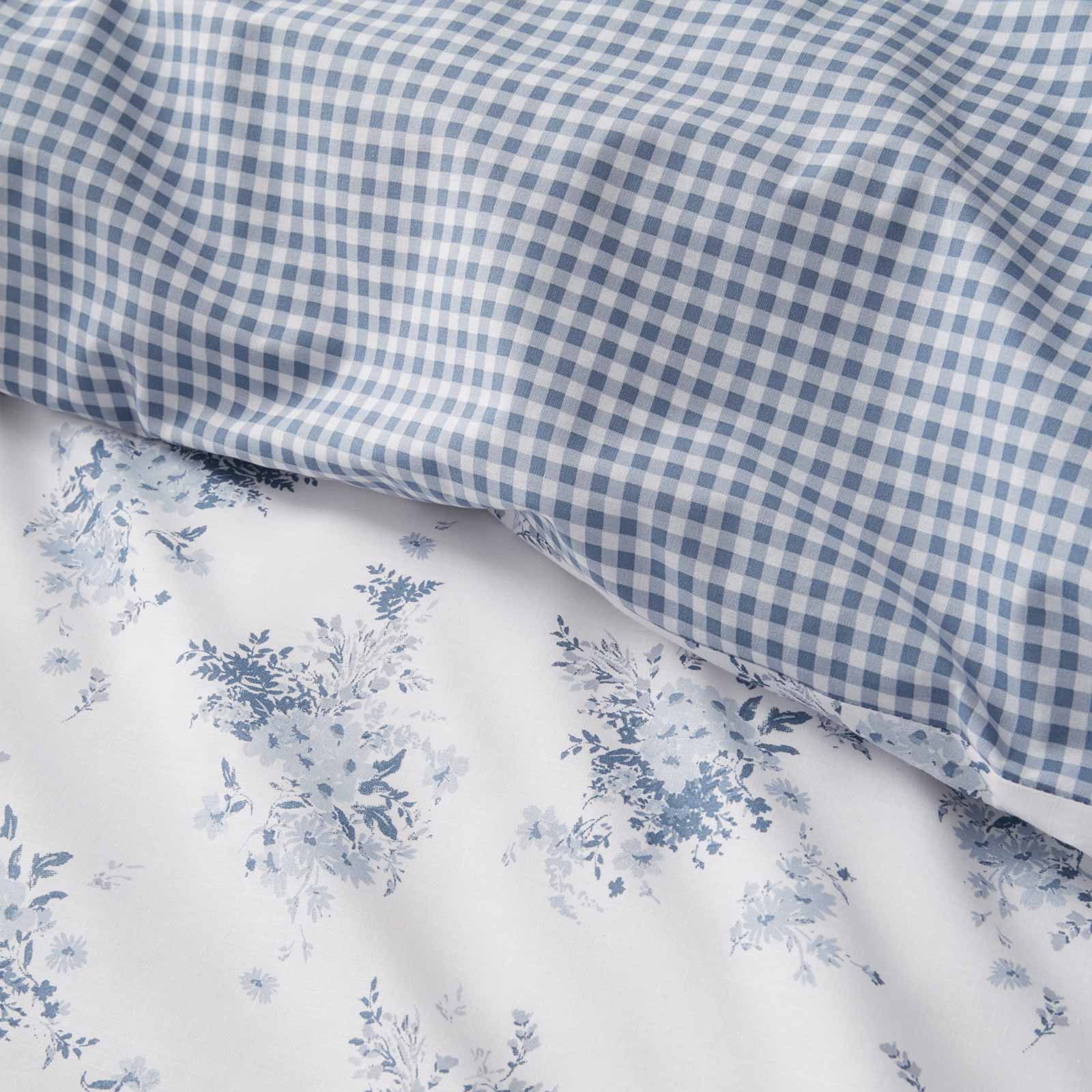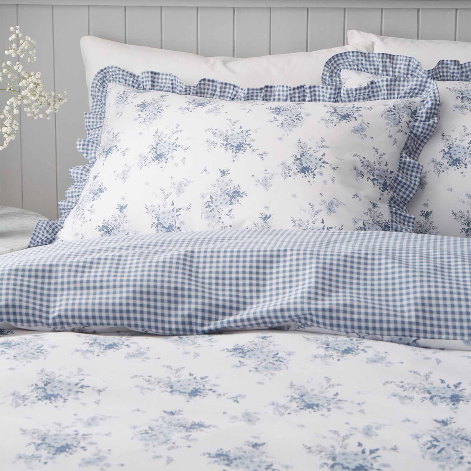 Bring the essence of the countryside into your main bedroom with this charming bedlinen set, showcasing a delicate blue floral design and frilled edges for added charm. Fully reversible design with a blue gingham pattern provides an additional layer of versatility. Created from easy-care recycled polyester and soft cotton, blended for everyday use.