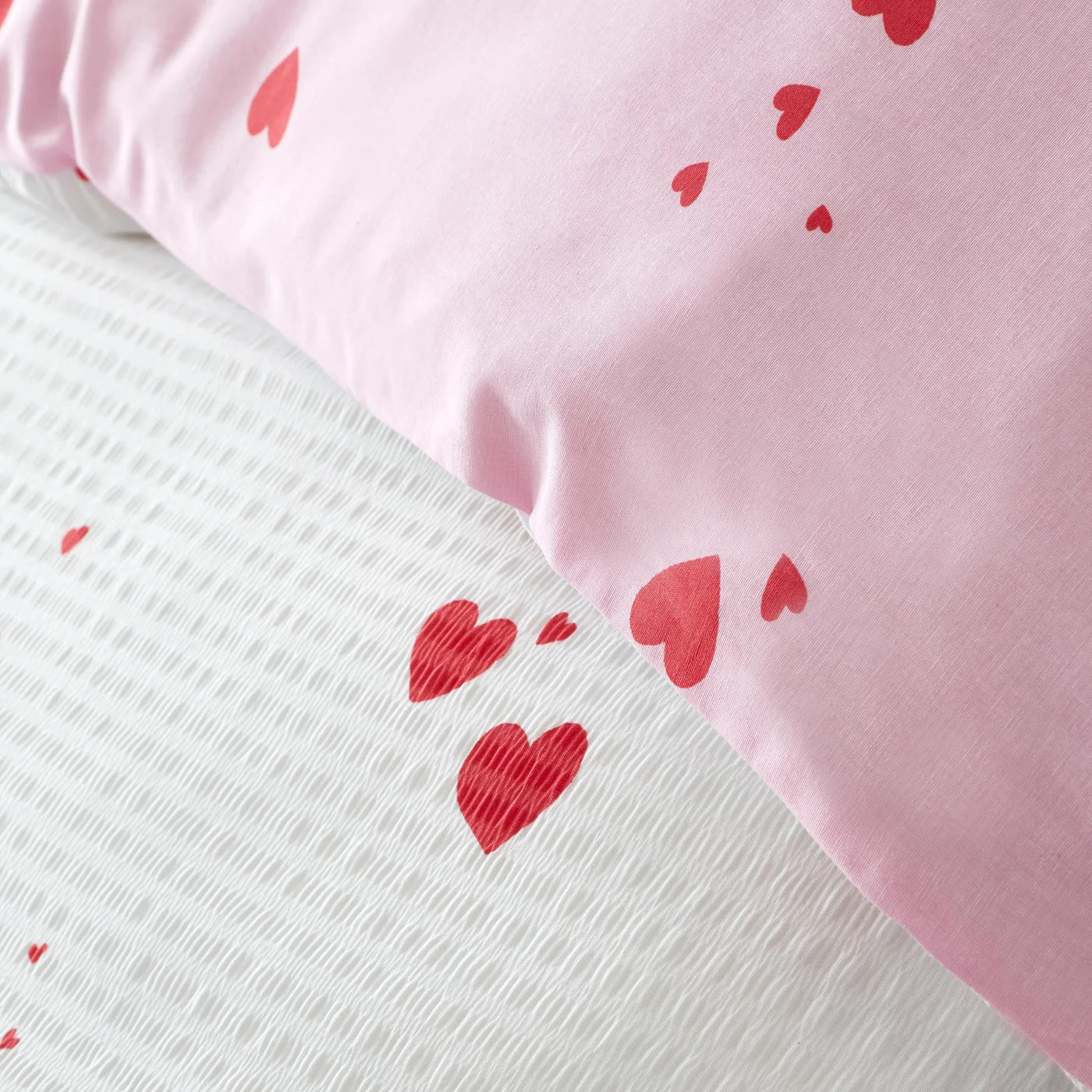 Add a touch of romance to your bedroom with this seersucker bedlinen set, featuring charming ditsy hearts on a crisp base. This set is fully reversible with a contrasting delicate heart design, allowing you to switch up your decor effortlessly. Crafted from a blend of recycled polyester and soft cotton, this bedding is designed for comfort and durability during everyday use.