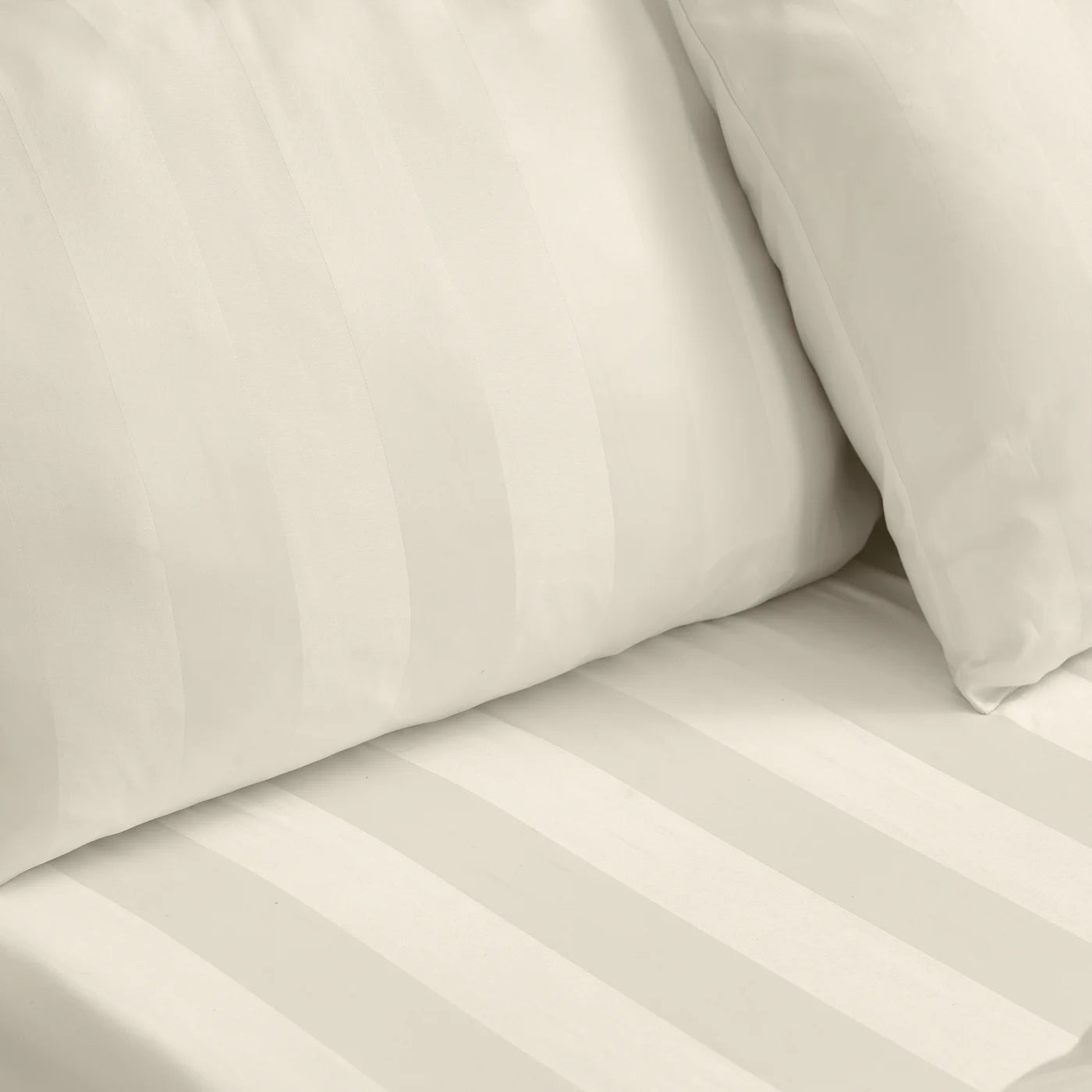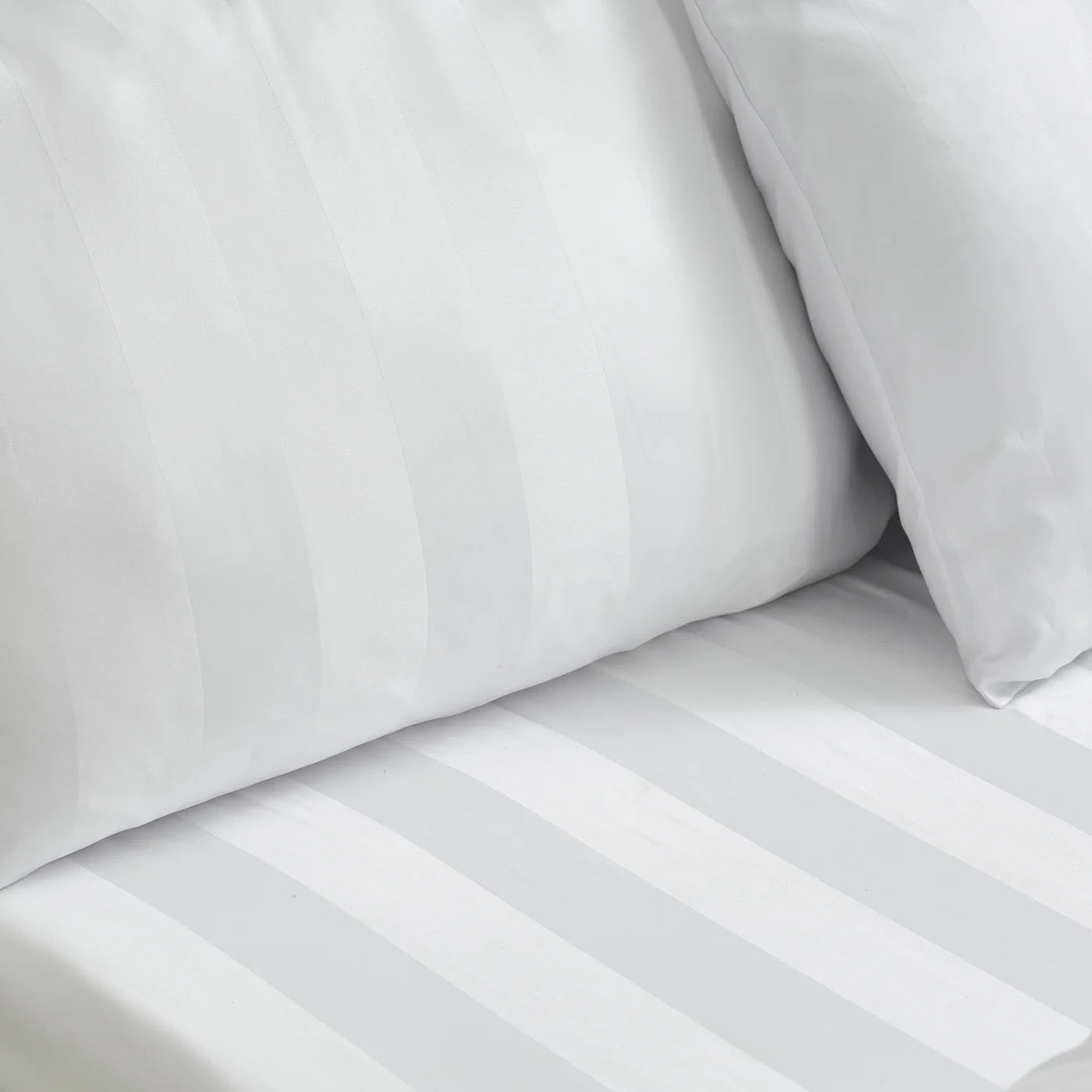 Bring a clean look to your bed with this understated fitted sheet, which features a classic stripe design. It provides a soft and smooth feel against the skin to help you get a comfortable night's rest.