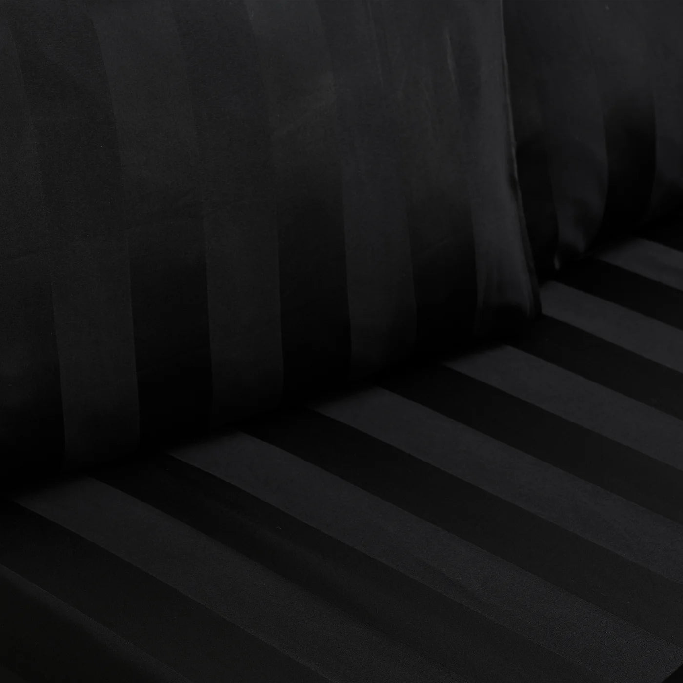 Catherine Lansfield So Soft Satin Stripe Black Fitted Sheet