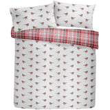 Created in super soft 100% brushed cotton and featuring a contemporary winter robin design on the front side and a striking tartan check design in complementary colours to the reverse, this duvet set will make any bed wonderfully warm and inviting and see you through the winter months in comfort and style.