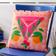Have fun in the sun with the ‘Cosmo O’ Clock’ outdoor cushion cover from our thirst quenching collection. Featuring a unique, abstract design of a Cosmo cocktail, surrounded by fresh fruits, and a playful slogan. This cushion is complete with a complementing pink reverse and will be a playful addition to your outdoor setting this summer season.