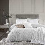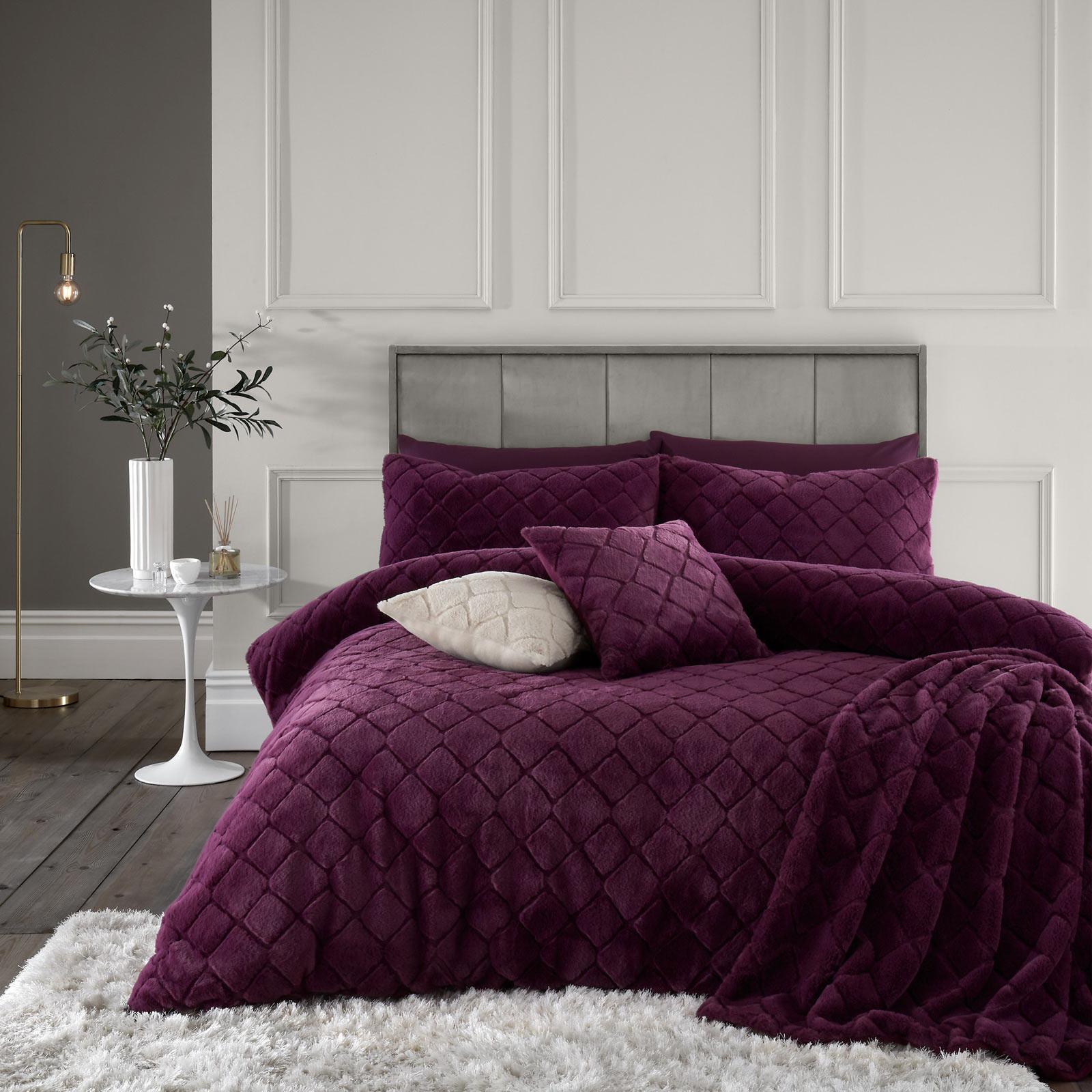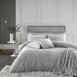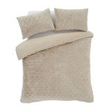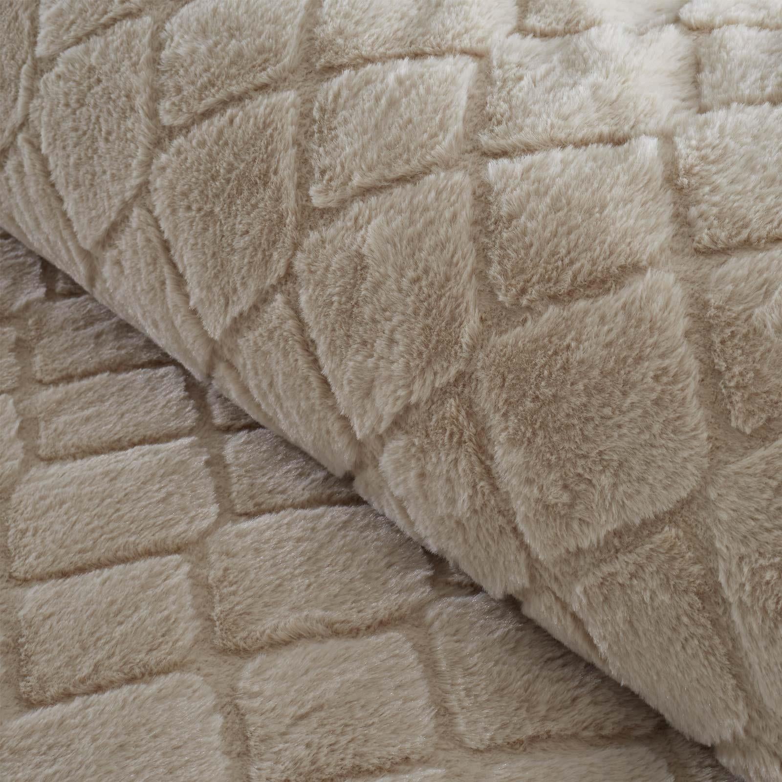 Indulge in luxurious comfort with our soft and cosy bedlinen featuring carved diamond shapes on a plush faux fur base. The exquisite diamond geometric patterns add a sophisticated texture, while the faux fur material ensures ultimate warmth and comfort, perfect for those colder nights.