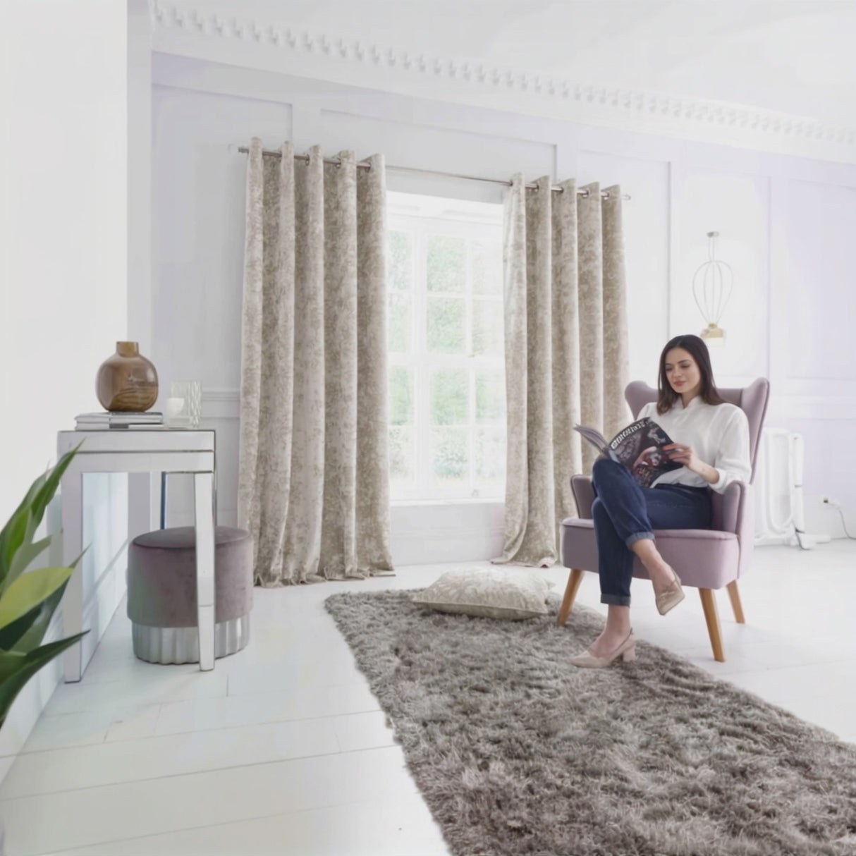 Transform your living space into a sanctuary of luxury with our exquisite crushed velvet eyelet curtains. Designed to elevate your home décor, these curtains feature a sumptuous texture that catches the light beautifully, adding a touch of glamour to any room. Whether you prefer a soft blush, a natural hue, or a sophisticated silver, these curtains provide the perfect backdrop for relaxation and style. Pair them with matching textured or diamante detail cushions for a cohesive look.