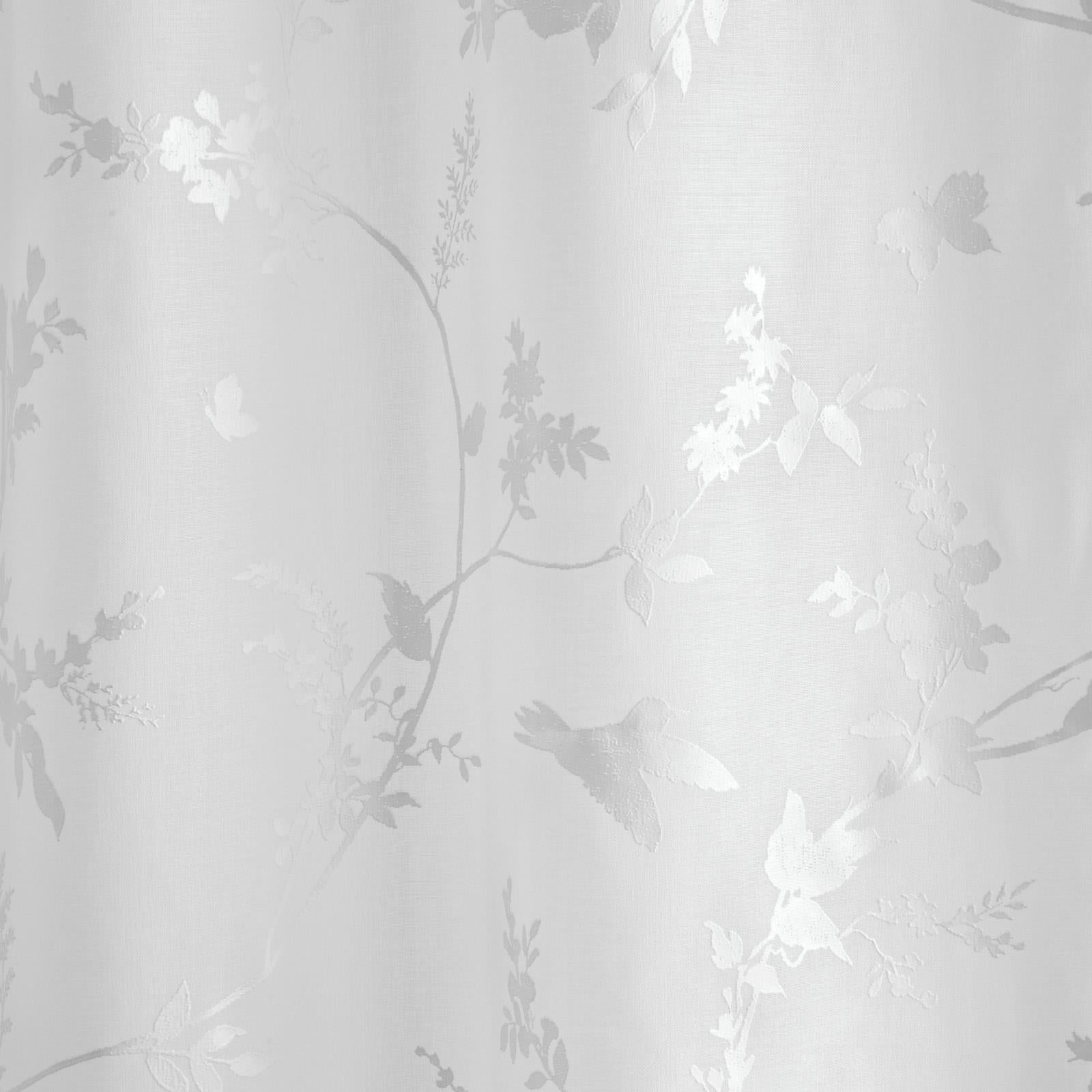 Featuring a delicate floral and bird print on a soft silver background, this elegant single voile panel is perfect for bringing a touch of glamorous style to your home. These voile panels are perfect for improving privacy while allowing natural light to enter your home and are crafted with a slot top header for easy installation. Machine washable for convenient care.