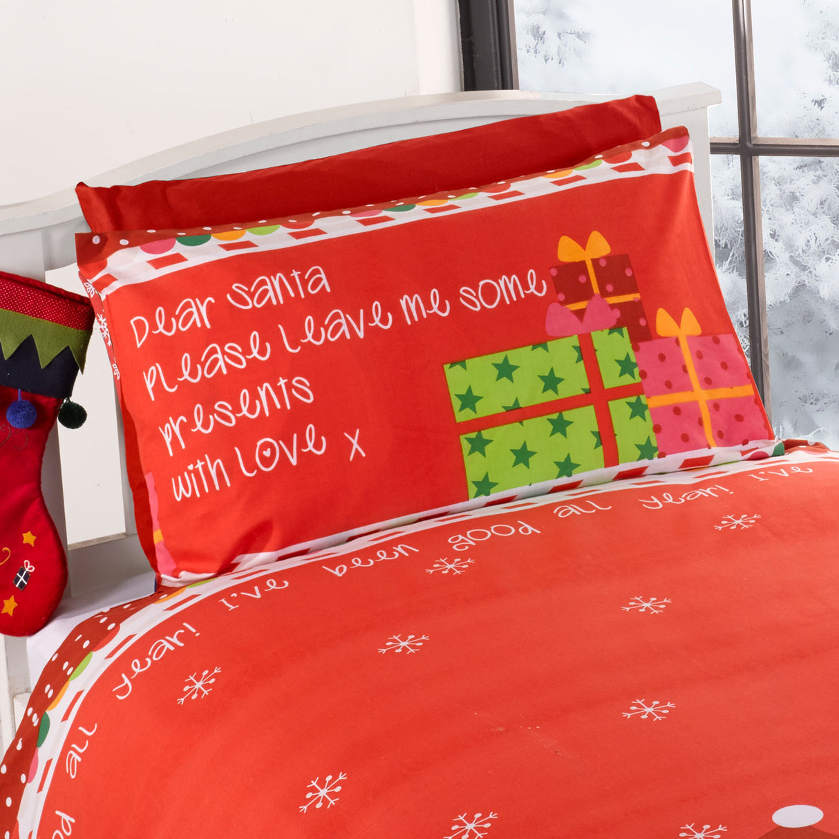 This popular children's duvet cover is the perfect addition to your child's bedroom this christmas. Featuring Santa and his reindeer alongside stacks of presents printed on a festive red background.