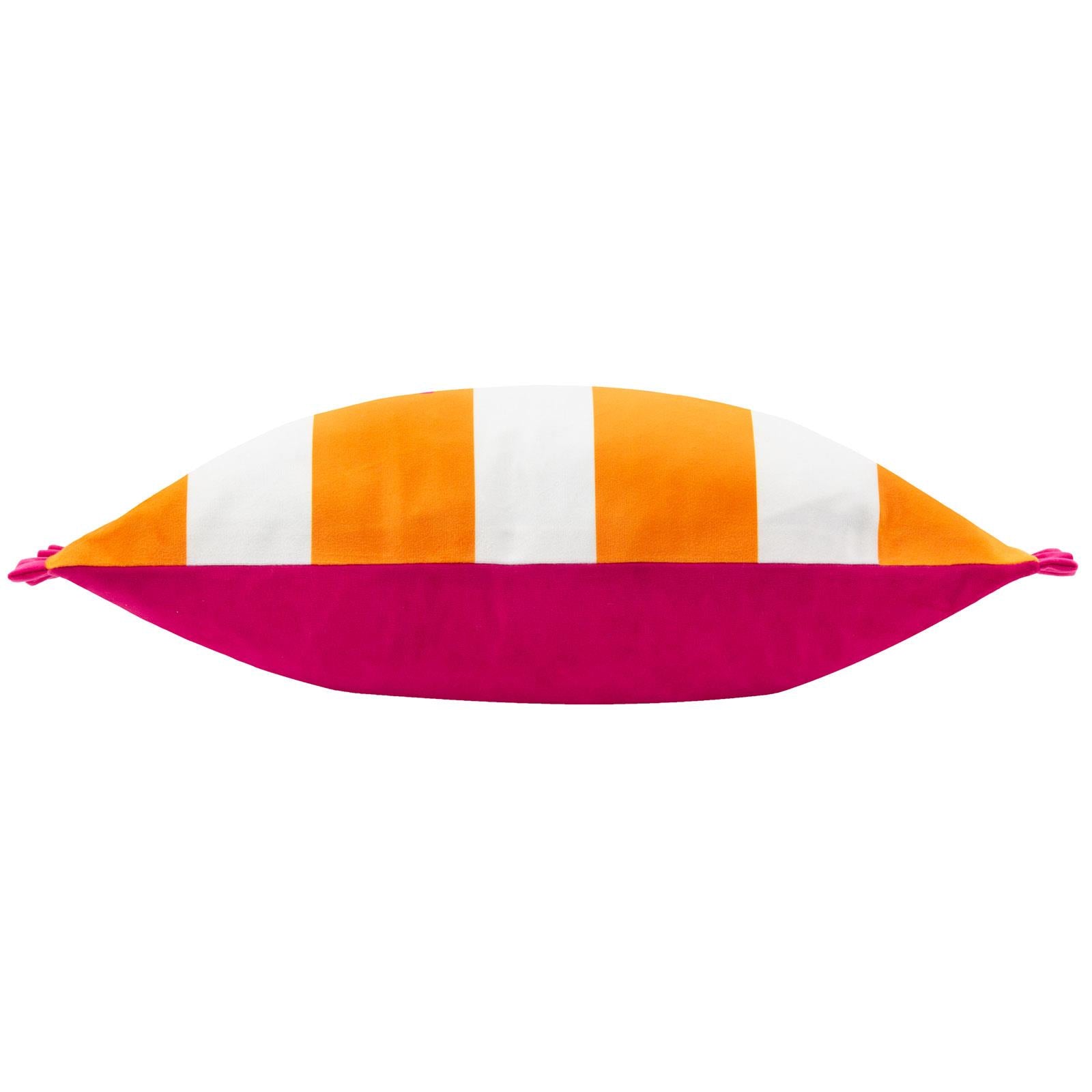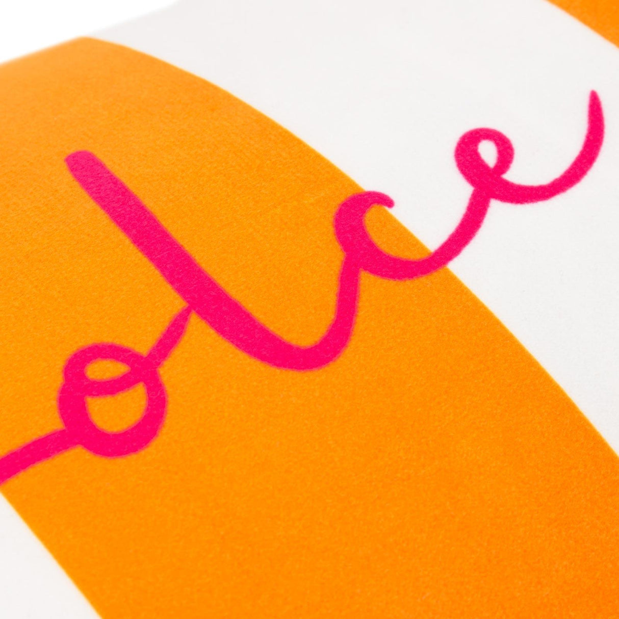 Cheerful and bursting with positivity, the Dolce Vita cushion cover is the perfect continental twist to help create a summery feel to your interiors. With a bright and bold colour palette, this design features an encouraging slogan printed on a vibrant striped velvet background. Finished with a trendy frill trim, this cushion will sit well in any modern home.