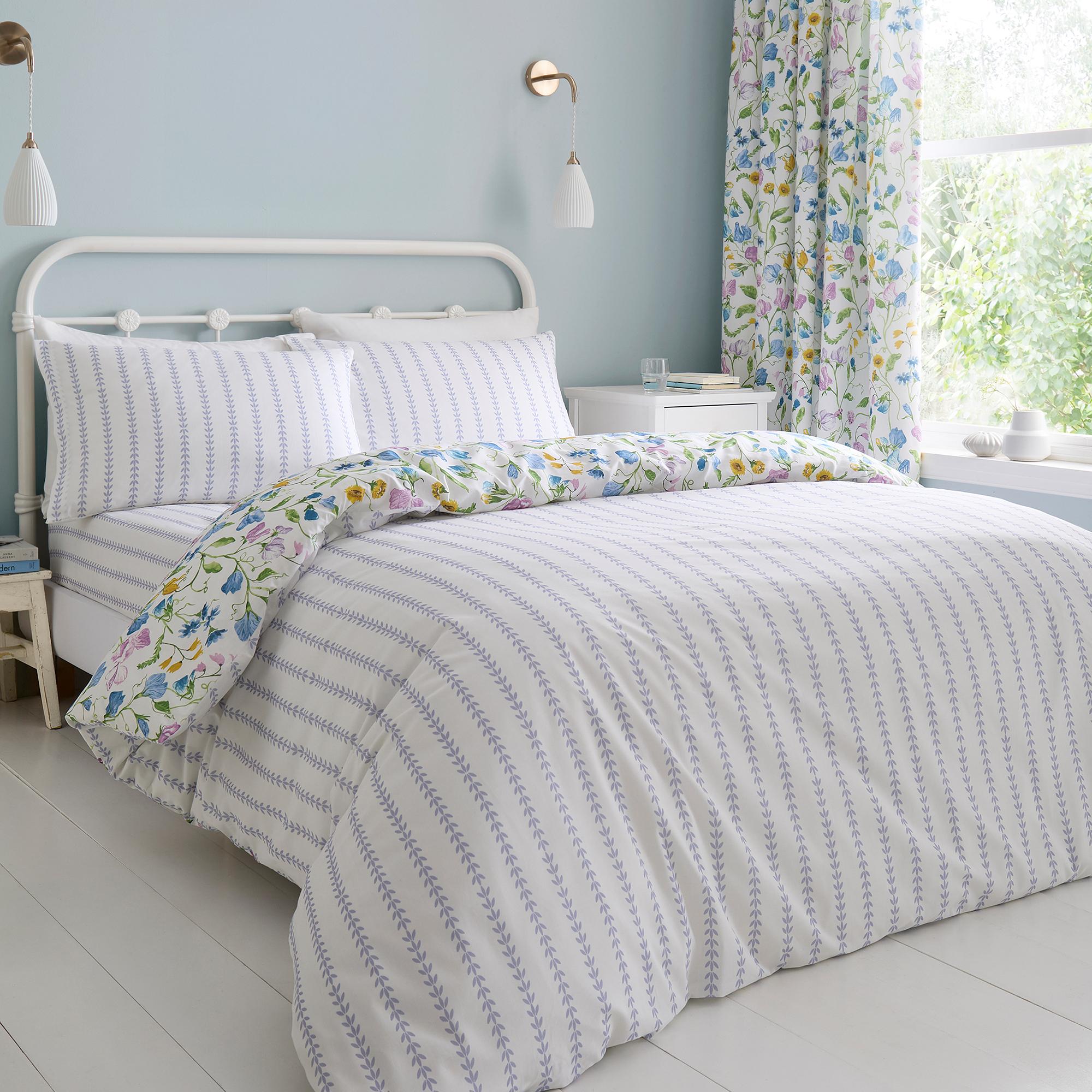 Sweetpea Floral 100% Cotton Lilac Duvet Cover Set