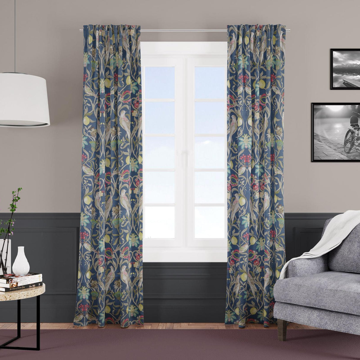 Reminiscent of a traditional William Morris design, the Eliza navy curtains are beautifully decorated in the extravagance and luxury of the Victorian era. This timeless floral design with vibrant hues is eye-catching and excellent for freshening up the décor in any modern home.
