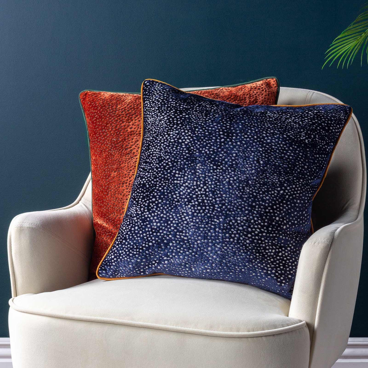 Transform your living space with our luxuriously soft cushion covers, each featuring a distinctive spotted cut velvet design in a reversible style. These elegant pieces are surrounded by bold, contrasting piped trims and finished with a convenient zip fastening, making them a splendid addition to your home furnishings. Available in a variety of rich, jewel tones, they effortlessly enhance any decor.