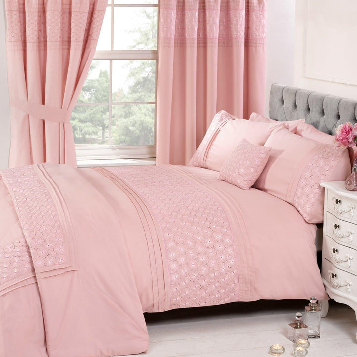 Discover the elegance of the Everdean collection, a beautifully crafted range of embellished bed linen designed to elevate your bedroom décor. Each duvet cover set features exquisite embroidered circles with pintuck edging, creating a fresh and timeless aesthetic that complements any style.