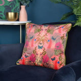 Pretty butterflies flutter amongst the jungle foliage, set against a fiery orange background to add a touch of drama to this beautifully designed cushion cover. Printed on special, rich opulence velvet for added luxury and finished with a contrast woven piped trim.