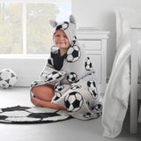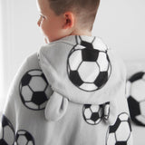 Get ready for match day with our cosy and warm fleece hooded blanket, perfect for your little football fanatic! With an all-over print of footballs, they'll feel like they're right on the pitch. The soft and snuggly fleece material will keep them warm and comfortable while they cheer on their favourite team.