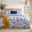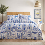 Imagine dipping your toes into the cobalt waters of the Aegaeon Sea, looking up to see perfect white villas dotted on the hillside, palms swaying in the breeze, and tiny shells washed up onto the crisp white sand. The Frieze duvet cover set features a printed design of symbols and icons inspired by travels around the Greek islands. Complete with a unique striped reverse, this duvet set is a fantastic way to add abstract art to your home.